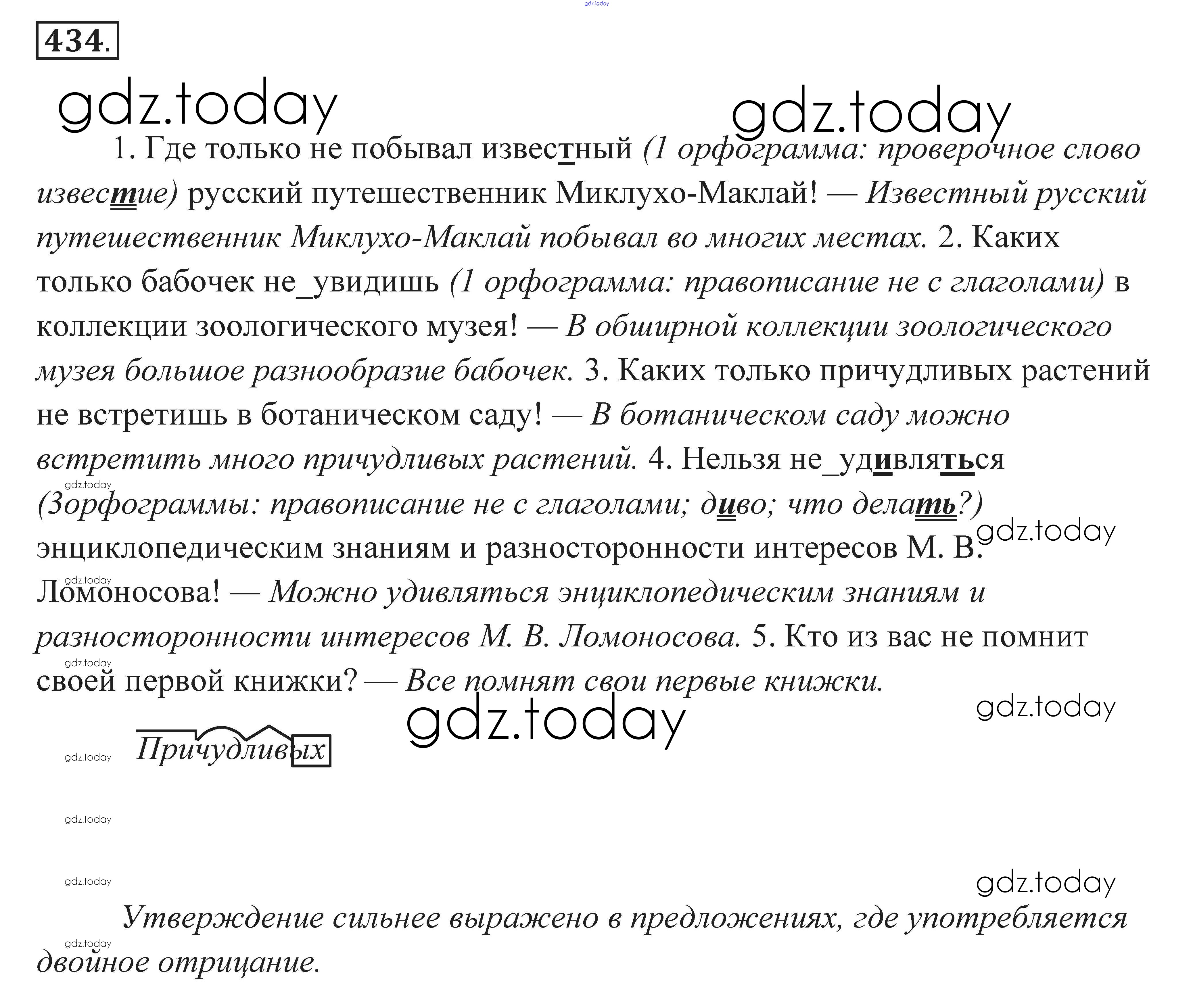 На страницах сайта gdz.today вы найдете учебный и вспомогательный материал, направленный на улучшения знаний школьной программы. ГДЗ - онлайн мир знаний Решение к заданиям 434 Практике по Русскому языку для 7 класса Пименова, Еремеева Дрофа 2016