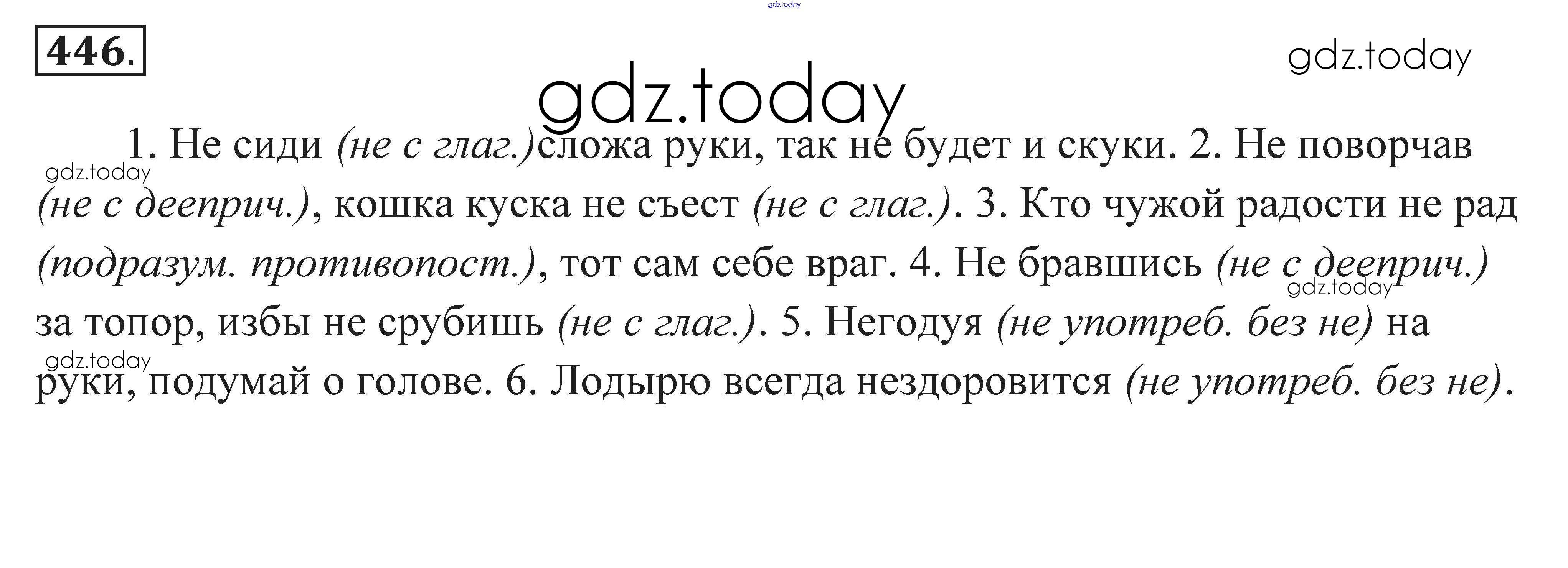 На страницах сайта gdz.today вы найдете учебный и вспомогательный материал, направленный на улучшения знаний школьной программы. ГДЗ - онлайн мир знаний Решение к заданиям 446 Практике по Русскому языку для 7 класса Пименова, Еремеева Дрофа 2016