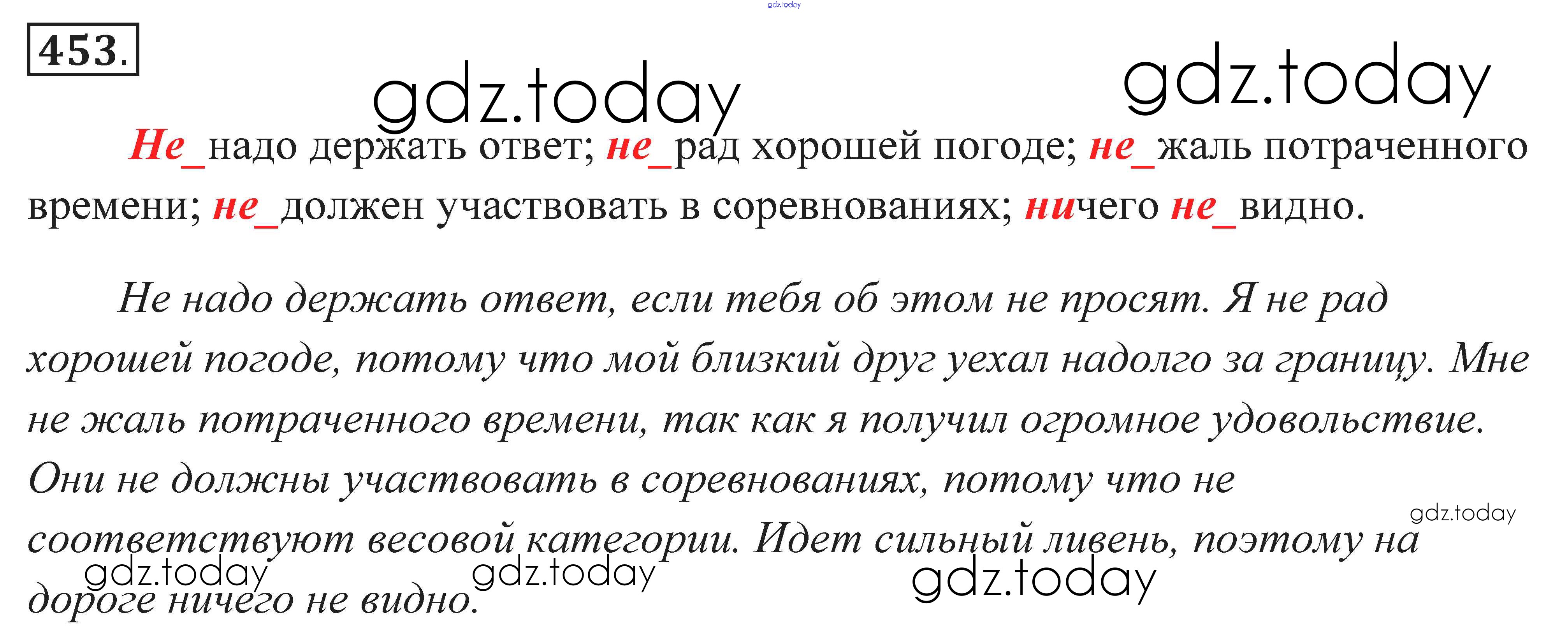 На страницах сайта gdz.today вы найдете учебный и вспомогательный материал, направленный на улучшения знаний школьной программы. ГДЗ - онлайн мир знаний Решение к заданиям 453 Практике по Русскому языку для 7 класса Пименова, Еремеева Дрофа 2016