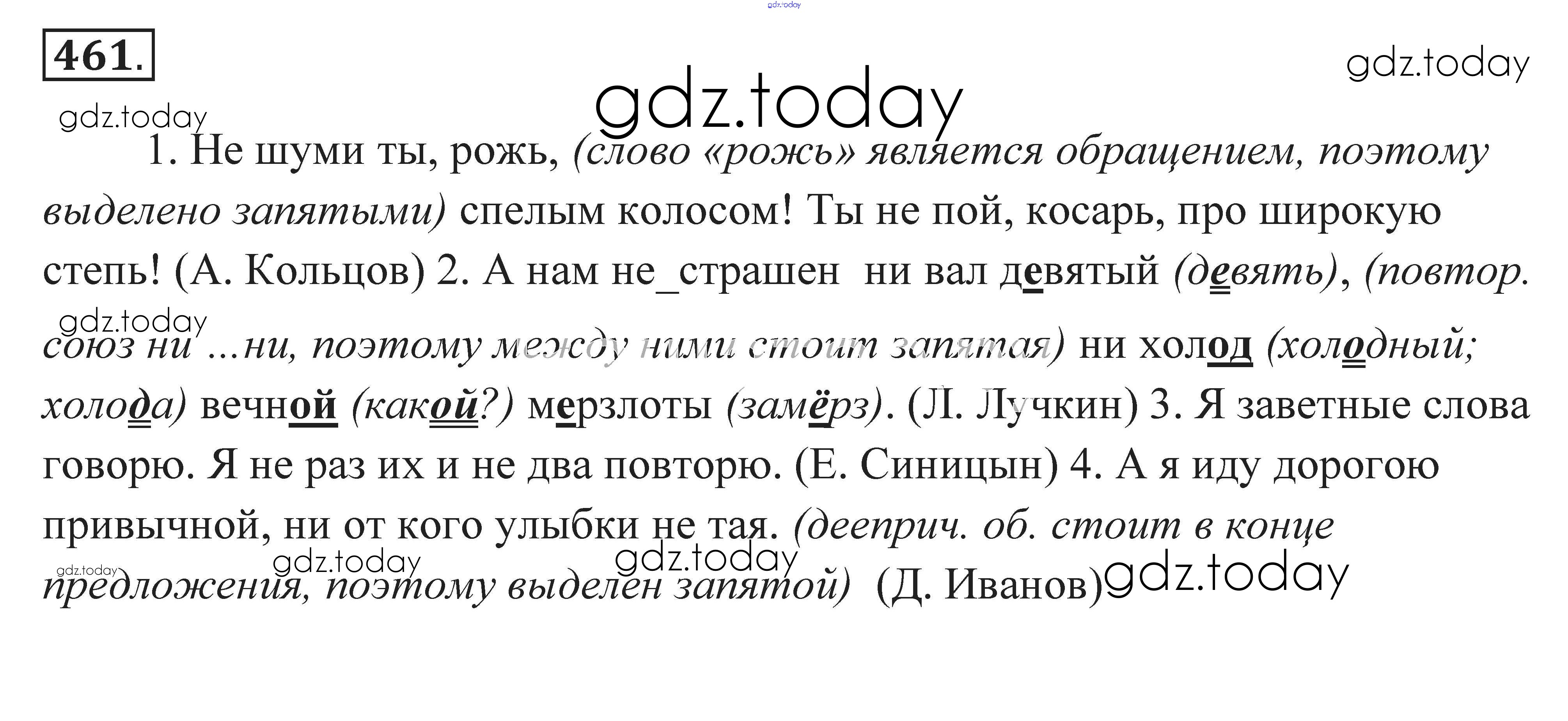 Ответы к Решение к заданиям 461 Практике по Русскому языку для 7 класса Пименова, Еремеева Дрофа 2016