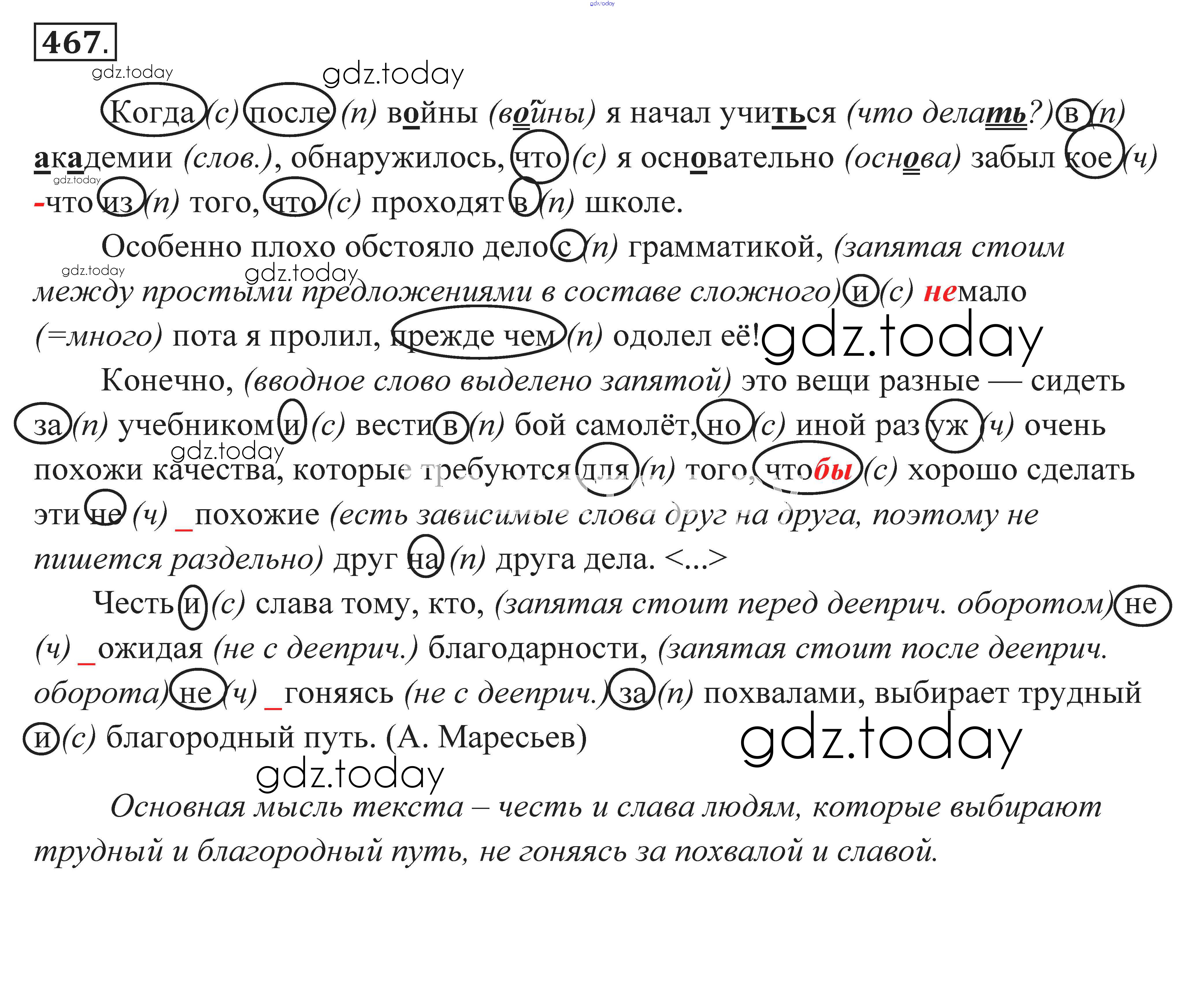 На страницах сайта gdz.today вы найдете учебный и вспомогательный материал, направленный на улучшения знаний школьной программы. ГДЗ - онлайн мир знаний Решение к заданиям 467 Практике по Русскому языку для 7 класса Пименова, Еремеева Дрофа 2016