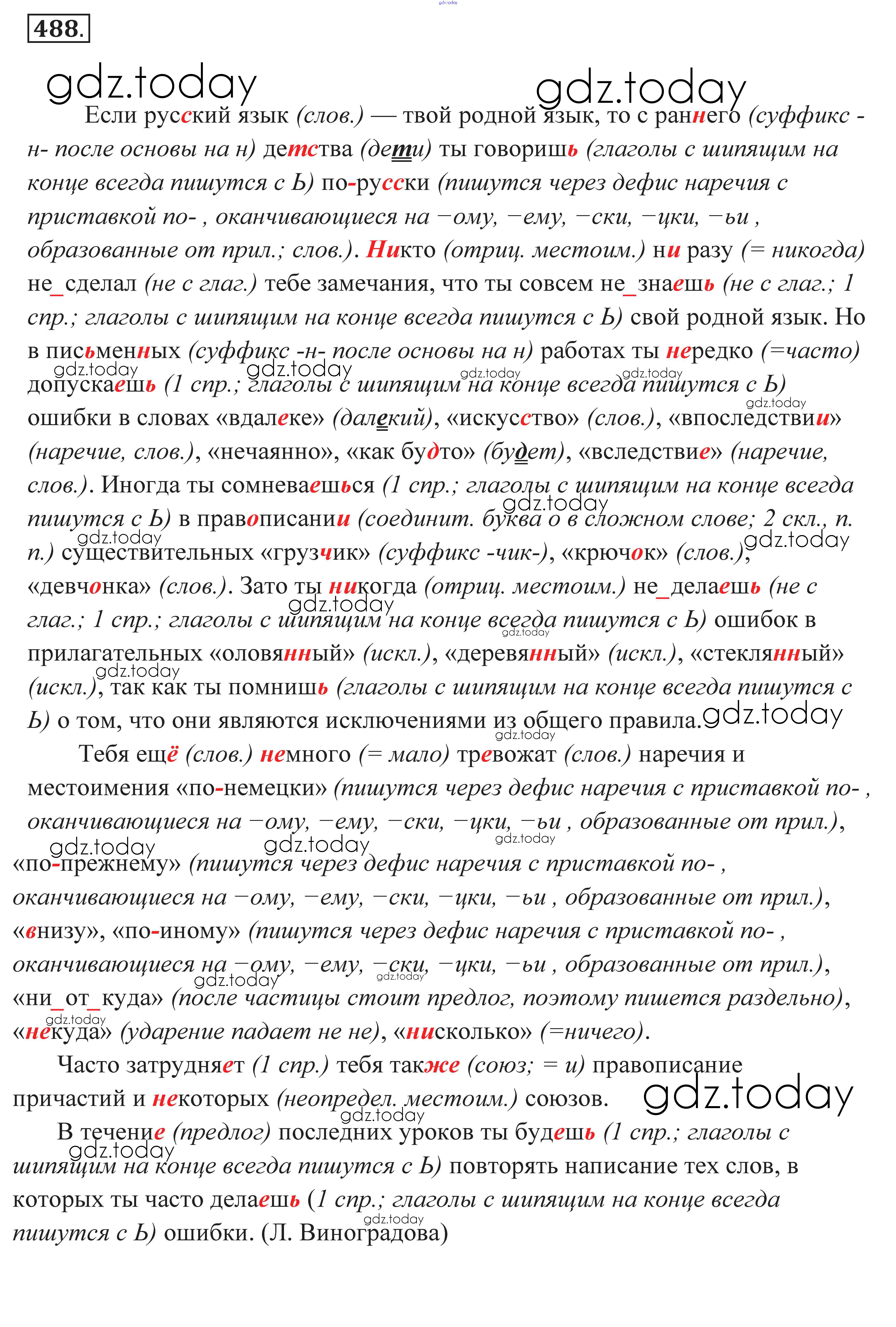 На страницах сайта gdz.today вы найдете учебный и вспомогательный материал, направленный на улучшения знаний школьной программы. ГДЗ - онлайн мир знаний Решение к заданиям 488 Практике по Русскому языку для 7 класса Пименова, Еремеева Дрофа 2016