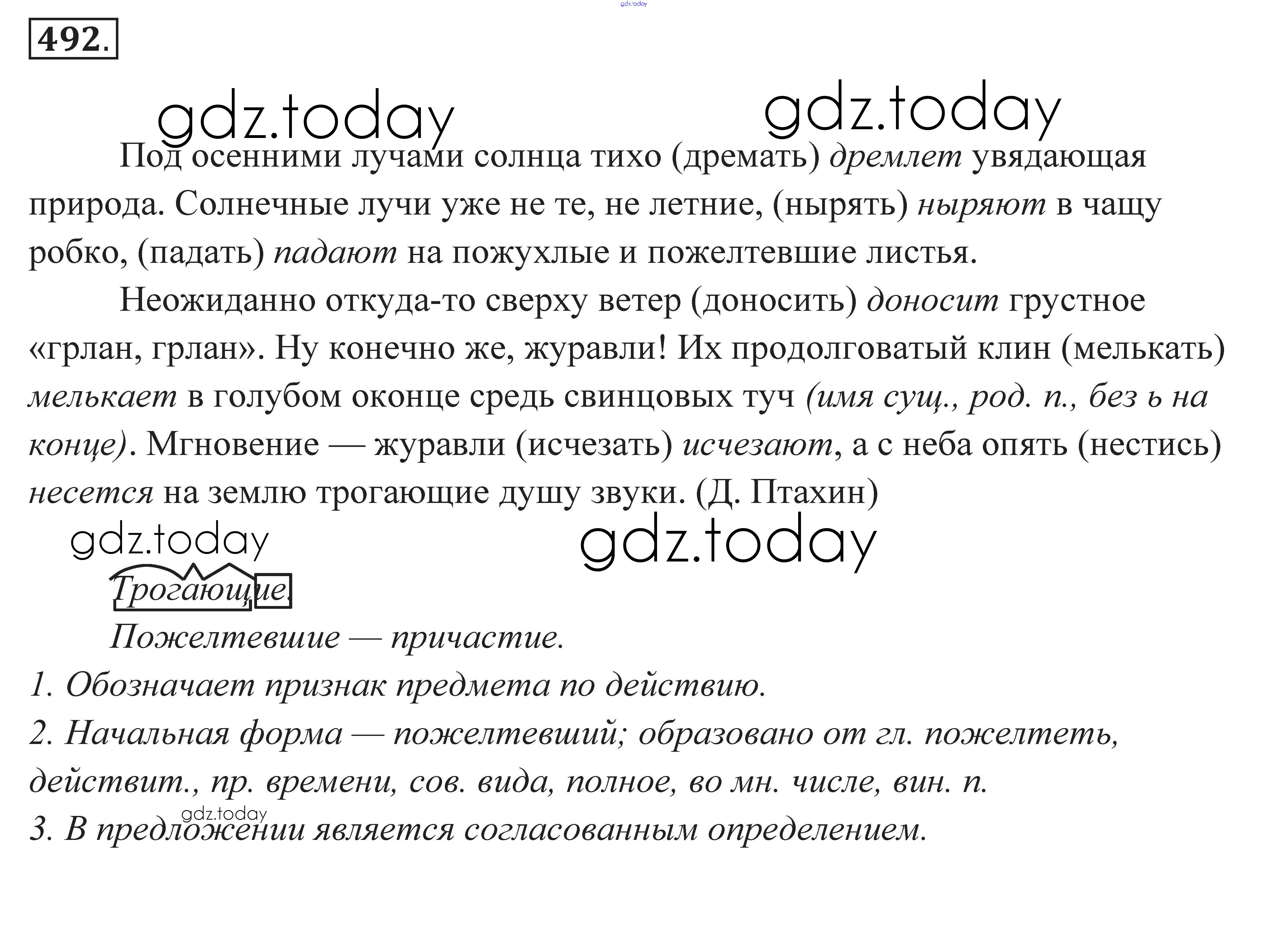 На страницах сайта gdz.today вы найдете учебный и вспомогательный материал, направленный на улучшения знаний школьной программы. ГДЗ - онлайн мир знаний Решение к заданиям 492 Практике по Русскому языку для 7 класса Пименова, Еремеева Дрофа 2016