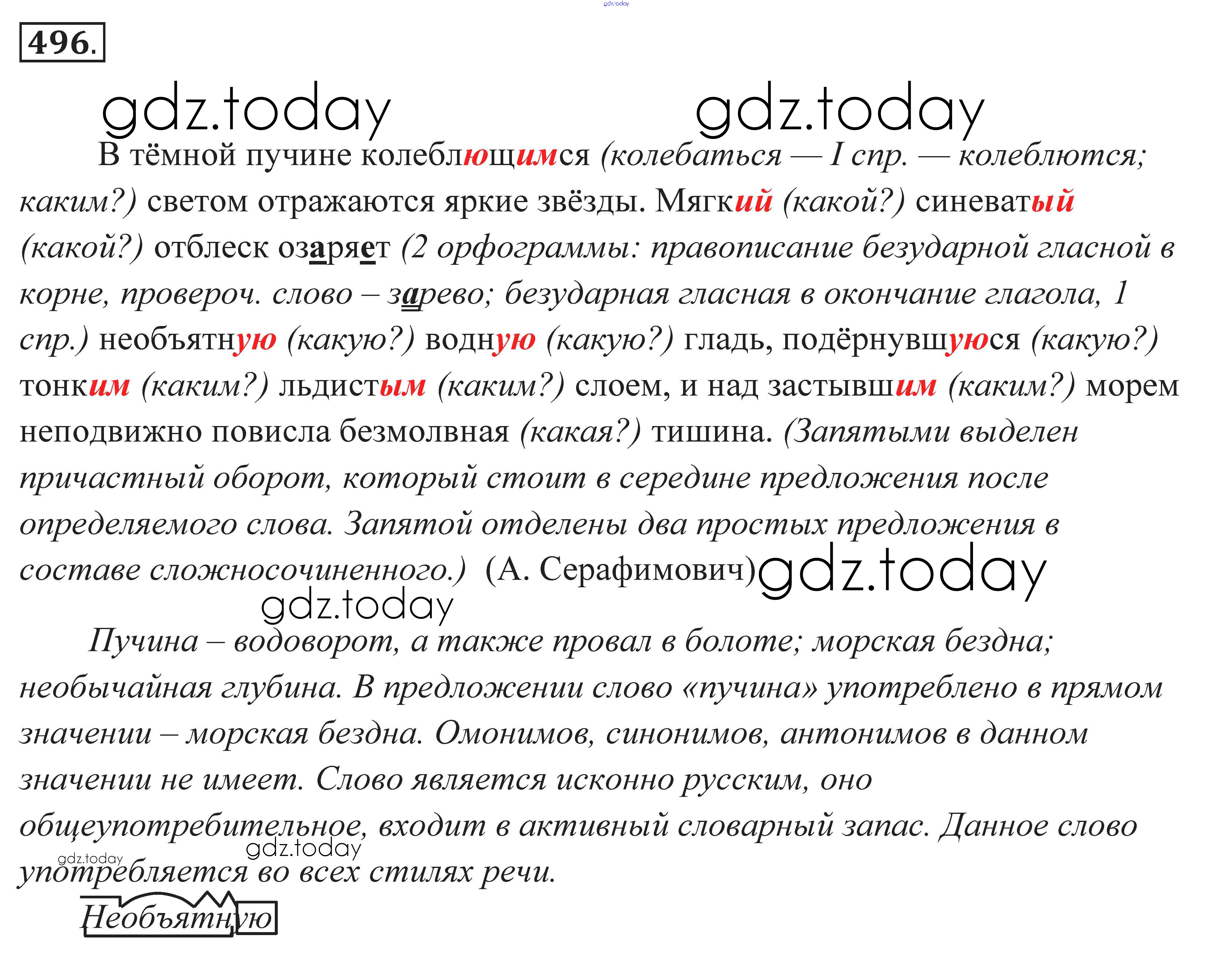 На страницах сайта gdz.today вы найдете учебный и вспомогательный материал, направленный на улучшения знаний школьной программы. ГДЗ - онлайн мир знаний Решение к заданиям 496 Практике по Русскому языку для 7 класса Пименова, Еремеева Дрофа 2016