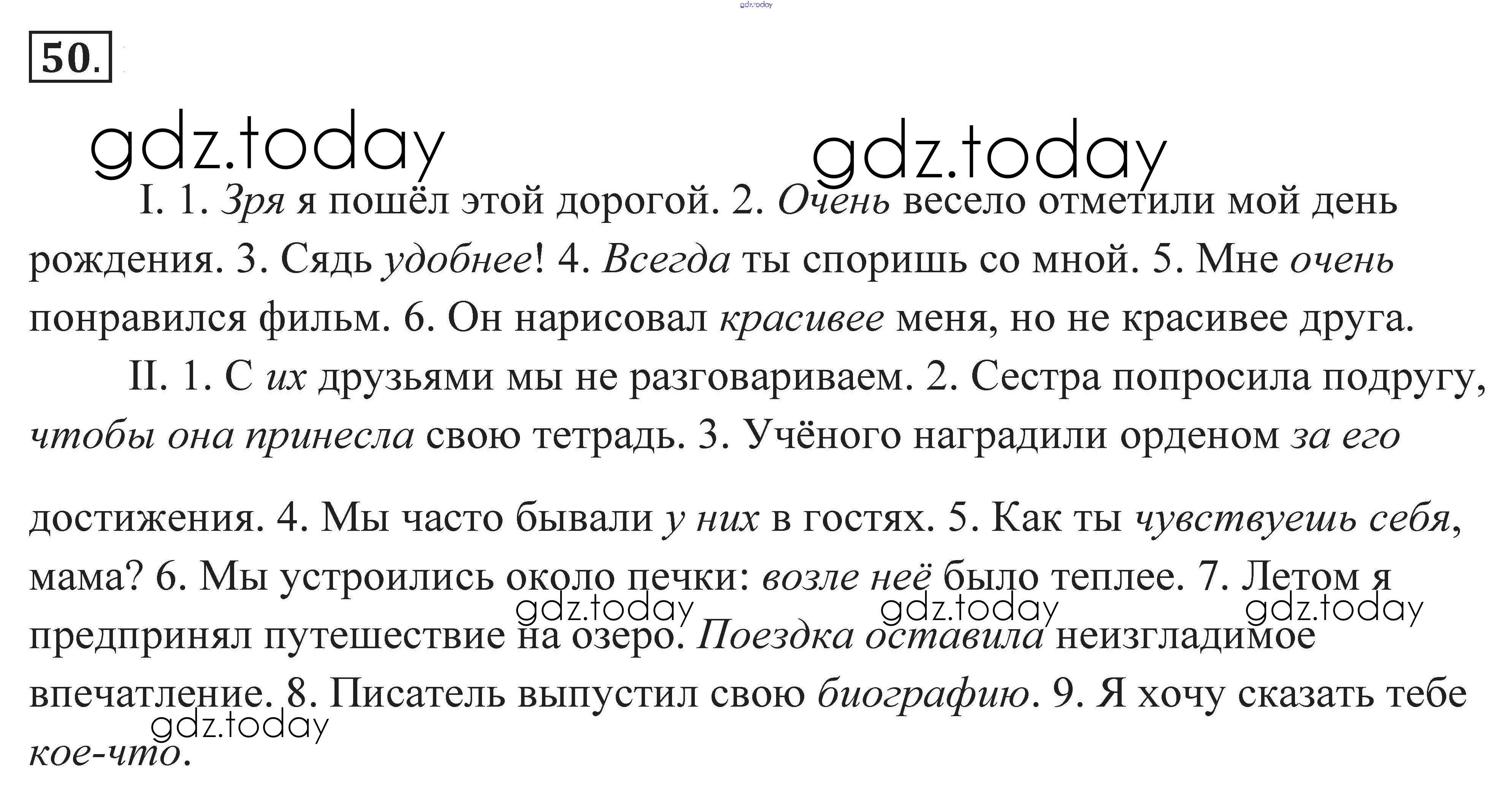 На страницах сайта gdz.today вы найдете учебный и вспомогательный материал, направленный на улучшения знаний школьной программы. ГДЗ - онлайн мир знаний Решение к заданиям 50 Практике по Русскому языку для 7 класса Пименова, Еремеева Дрофа 2016