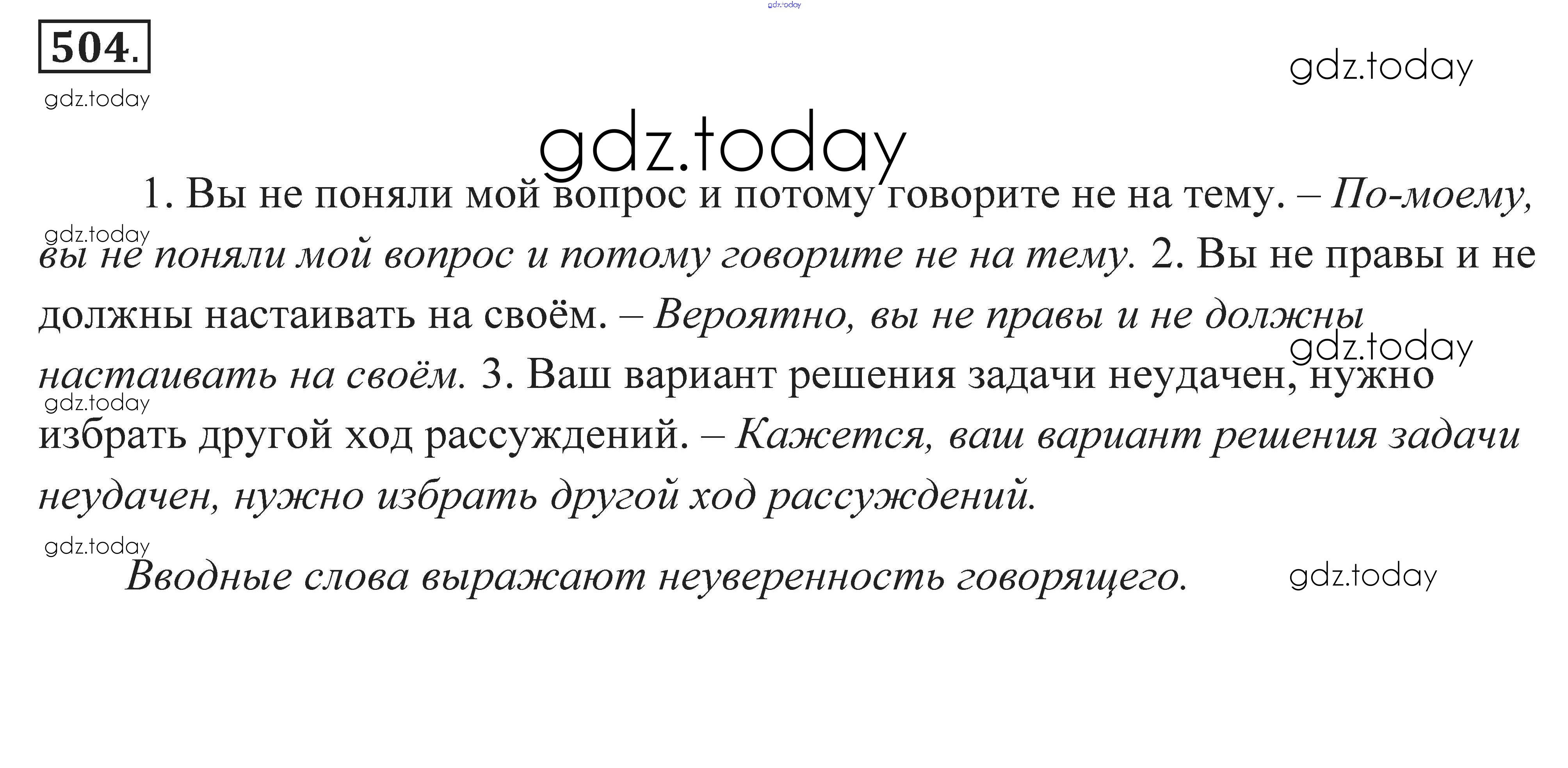 На страницах сайта gdz.today вы найдете учебный и вспомогательный материал, направленный на улучшения знаний школьной программы. ГДЗ - онлайн мир знаний Решение к заданиям 504 Практике по Русскому языку для 7 класса Пименова, Еремеева Дрофа 2016