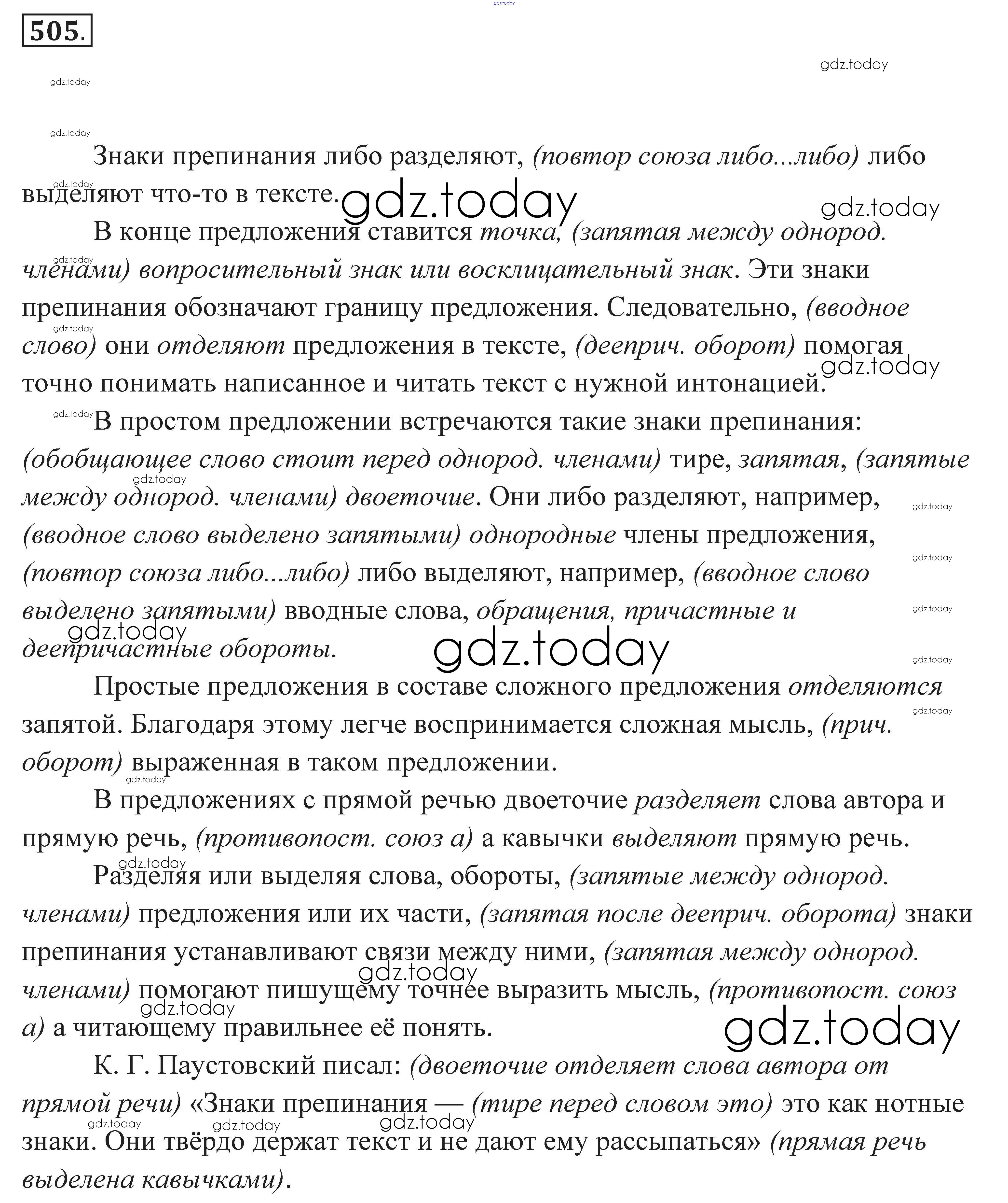 На страницах сайта gdz.today вы найдете учебный и вспомогательный материал, направленный на улучшения знаний школьной программы. ГДЗ - онлайн мир знаний Решение к заданиям 505 Практике по Русскому языку для 7 класса Пименова, Еремеева Дрофа 2016