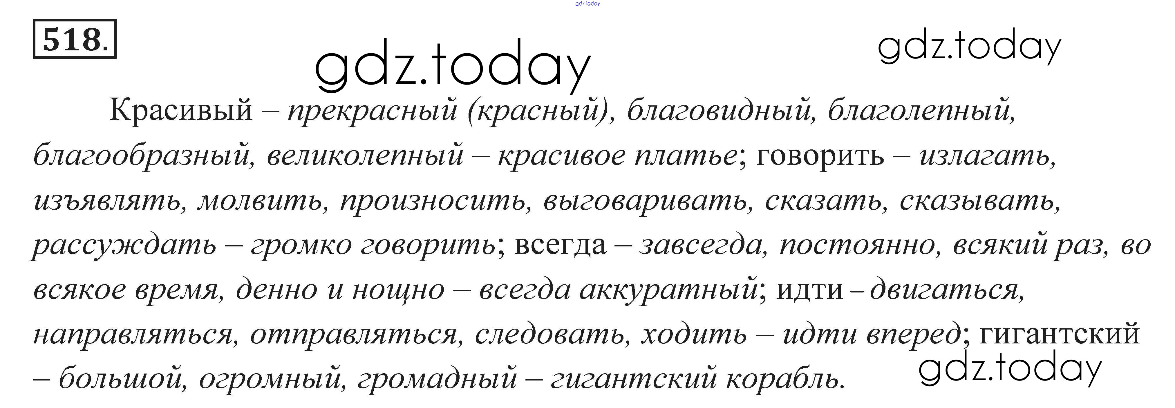 На страницах сайта gdz.today вы найдете учебный и вспомогательный материал, направленный на улучшения знаний школьной программы. ГДЗ - онлайн мир знаний Решение к заданиям 518 Практике по Русскому языку для 7 класса Пименова, Еремеева Дрофа 2016