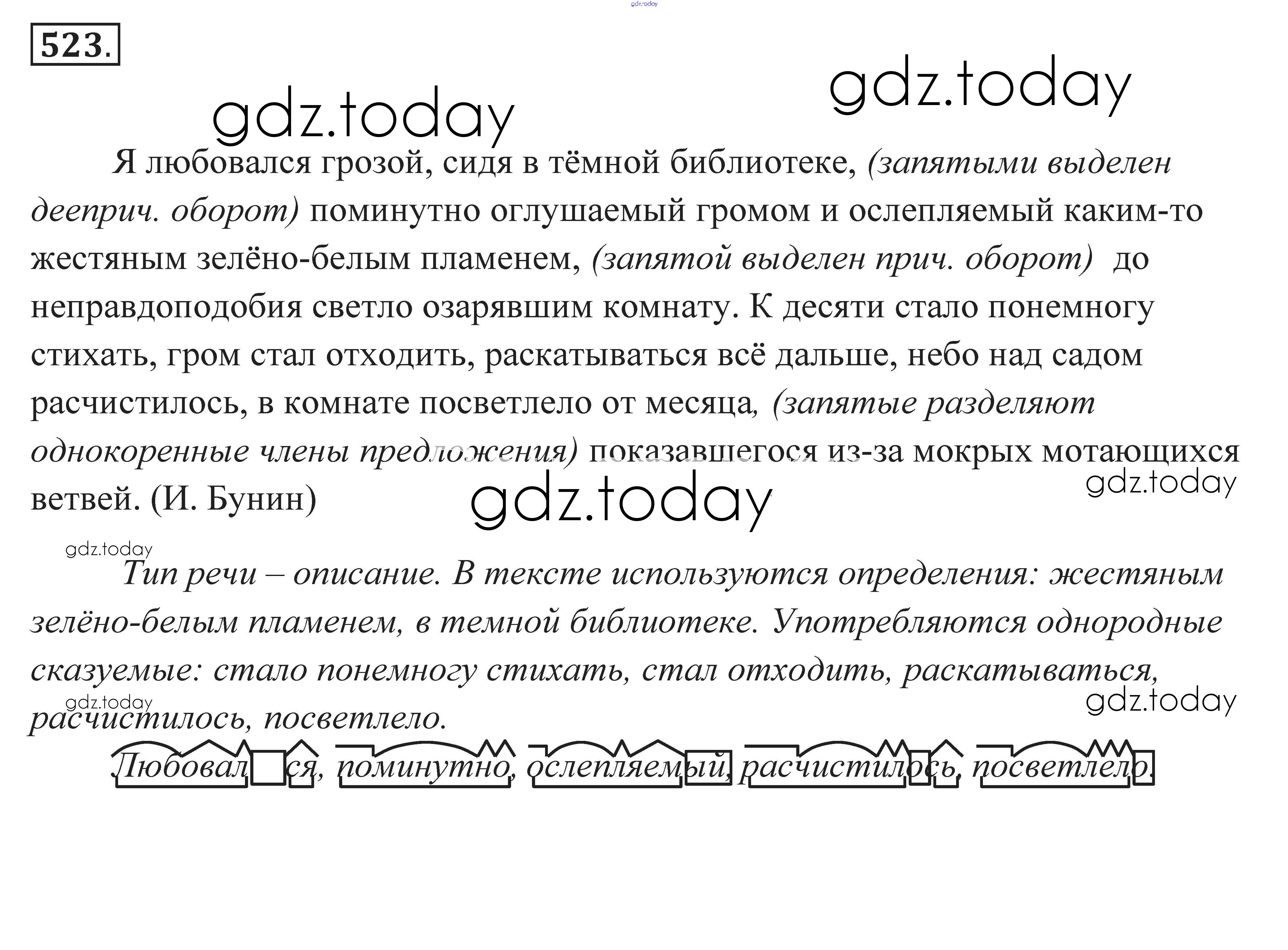 На страницах сайта gdz.today вы найдете учебный и вспомогательный материал, направленный на улучшения знаний школьной программы. ГДЗ - онлайн мир знаний Решение к заданиям 523 Практике по Русскому языку для 7 класса Пименова, Еремеева Дрофа 2016