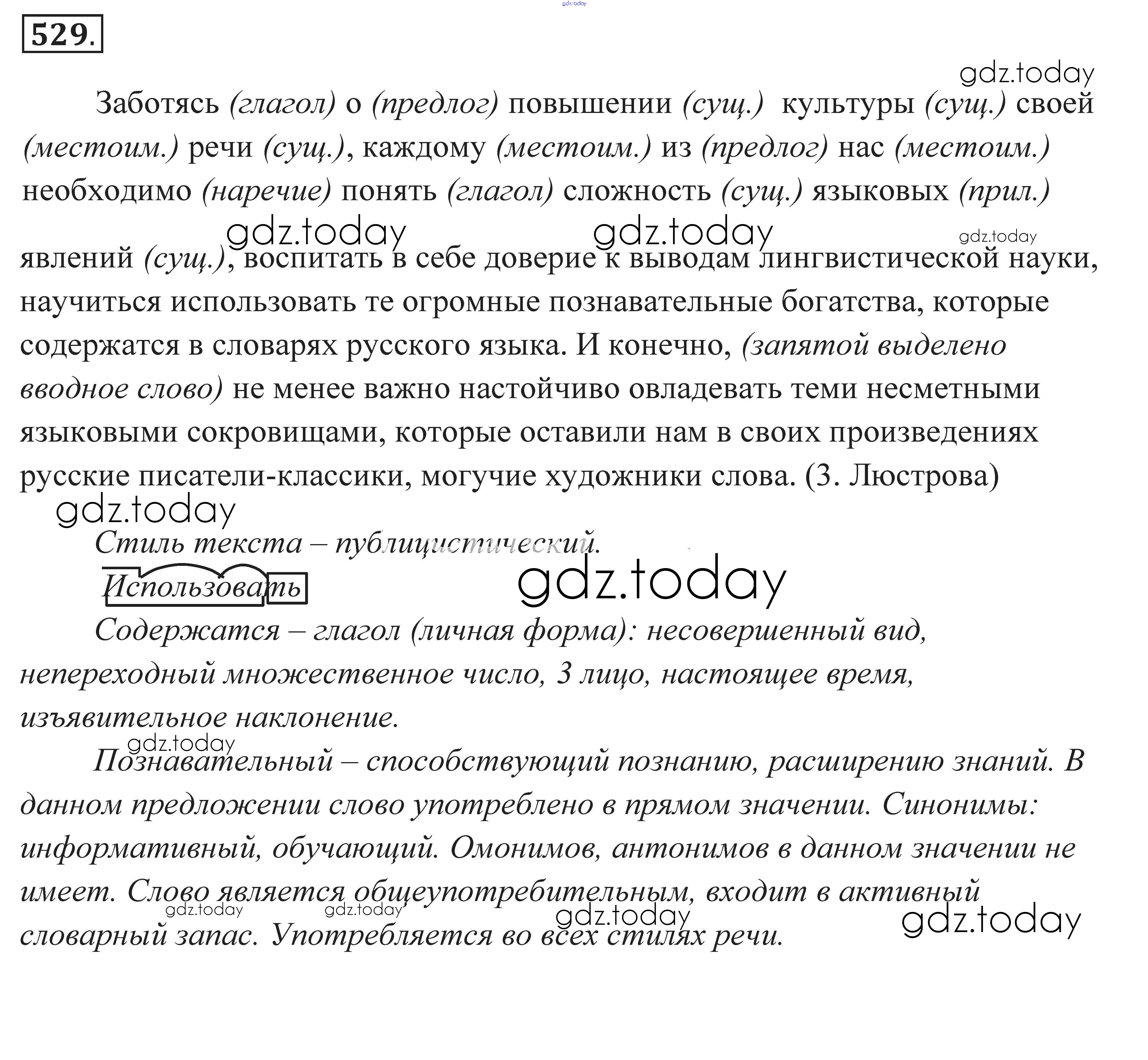 На страницах сайта gdz.today вы найдете учебный и вспомогательный материал, направленный на улучшения знаний школьной программы. ГДЗ - онлайн мир знаний Решение к заданиям 529 Практике по Русскому языку для 7 класса Пименова, Еремеева Дрофа 2016