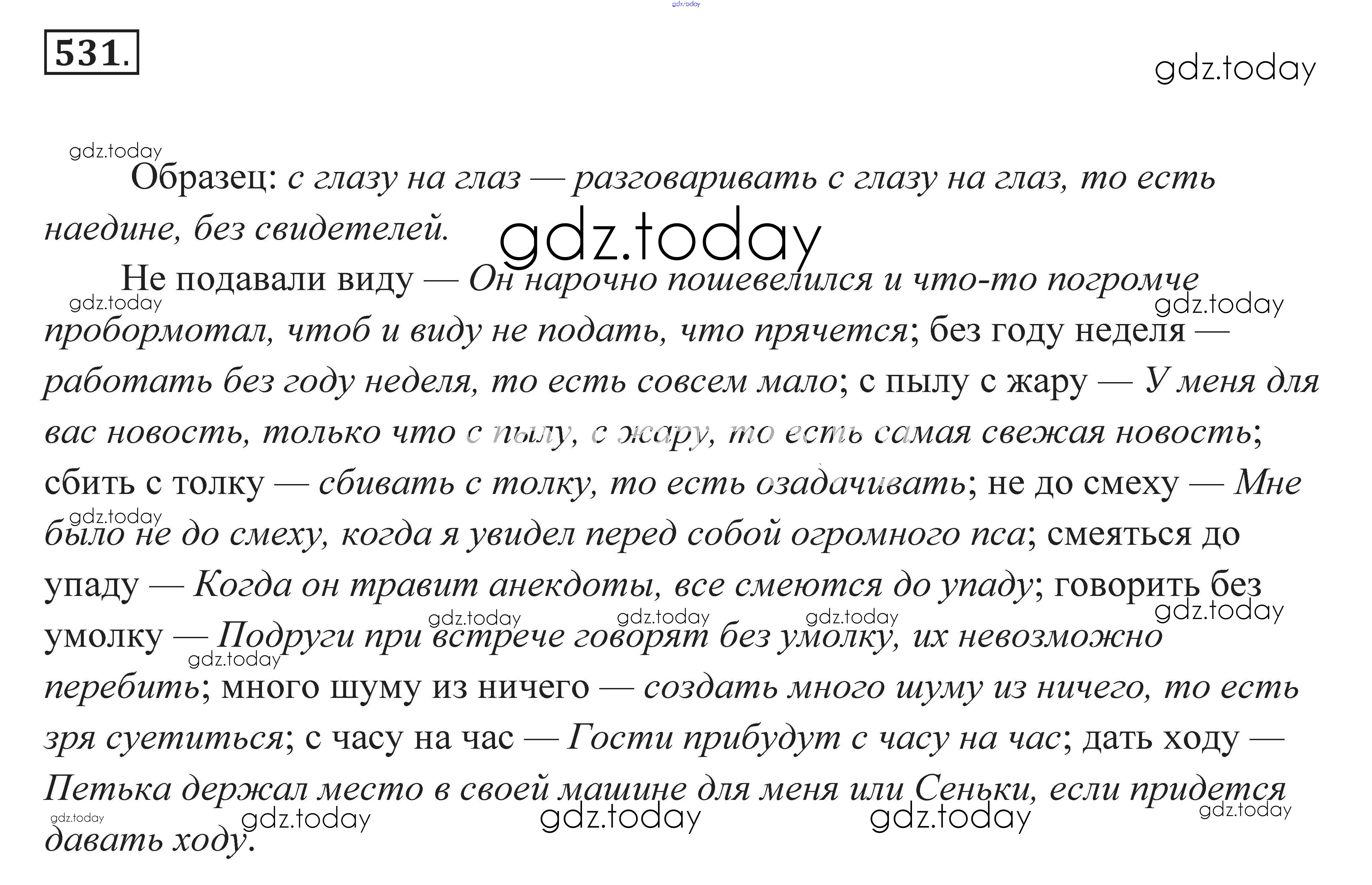 На страницах сайта gdz.today вы найдете учебный и вспомогательный материал, направленный на улучшения знаний школьной программы. ГДЗ - онлайн мир знаний Решение к заданиям 531 Практике по Русскому языку для 7 класса Пименова, Еремеева Дрофа 2016