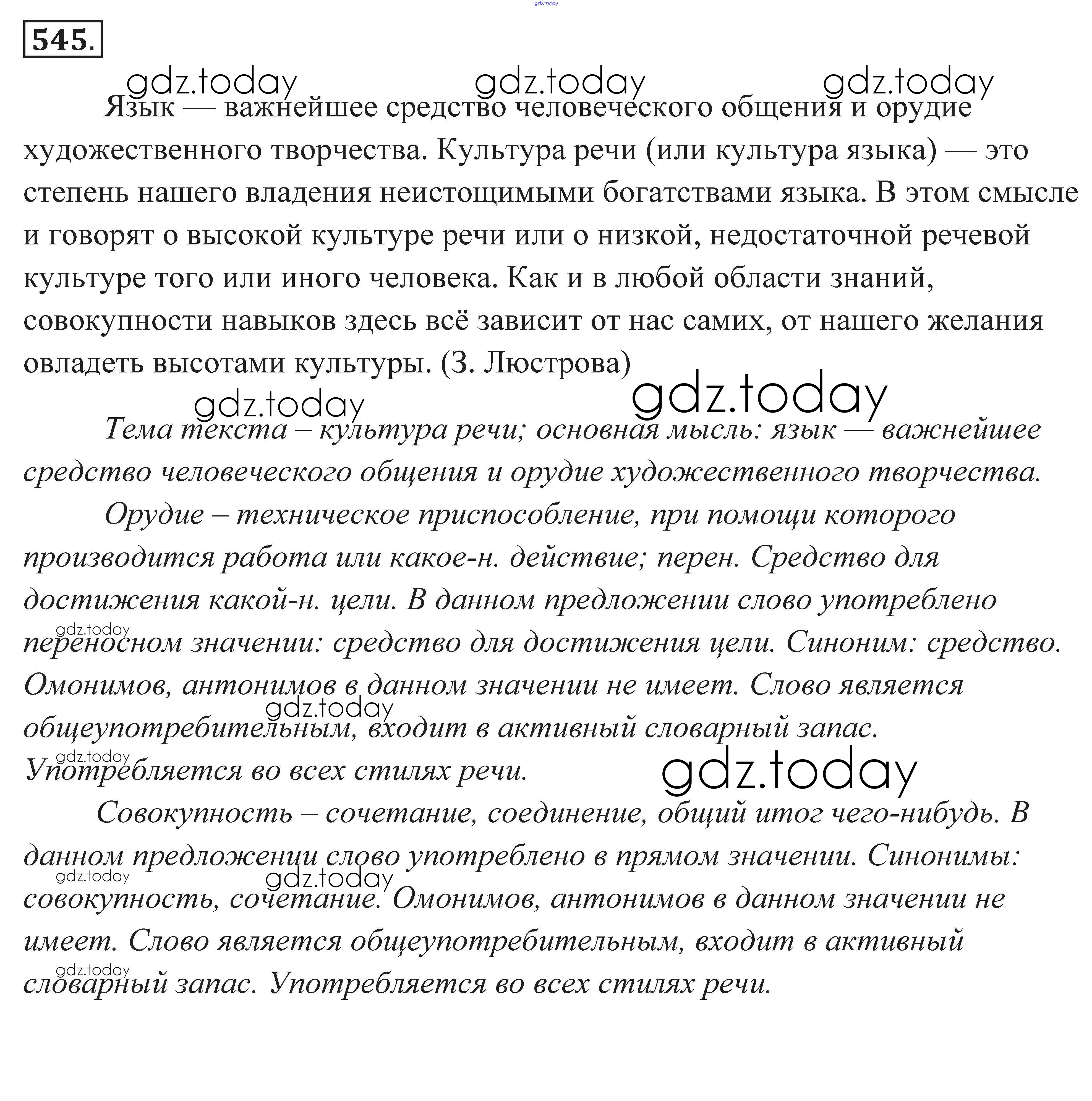 На страницах сайта gdz.today вы найдете учебный и вспомогательный материал, направленный на улучшения знаний школьной программы. ГДЗ - онлайн мир знаний Решение к заданиям 545 Практике по Русскому языку для 7 класса Пименова, Еремеева Дрофа 2016