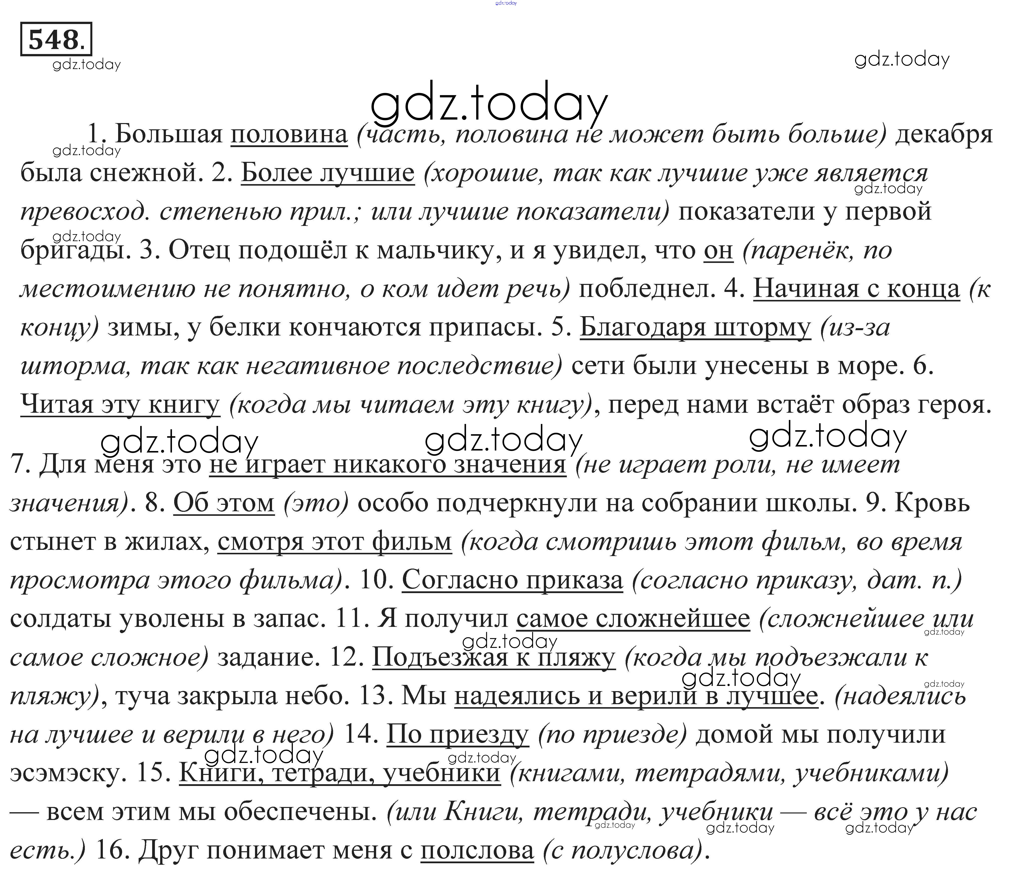На страницах сайта gdz.today вы найдете учебный и вспомогательный материал, направленный на улучшения знаний школьной программы. ГДЗ - онлайн мир знаний Решение к заданиям 548 Практике по Русскому языку для 7 класса Пименова, Еремеева Дрофа 2016