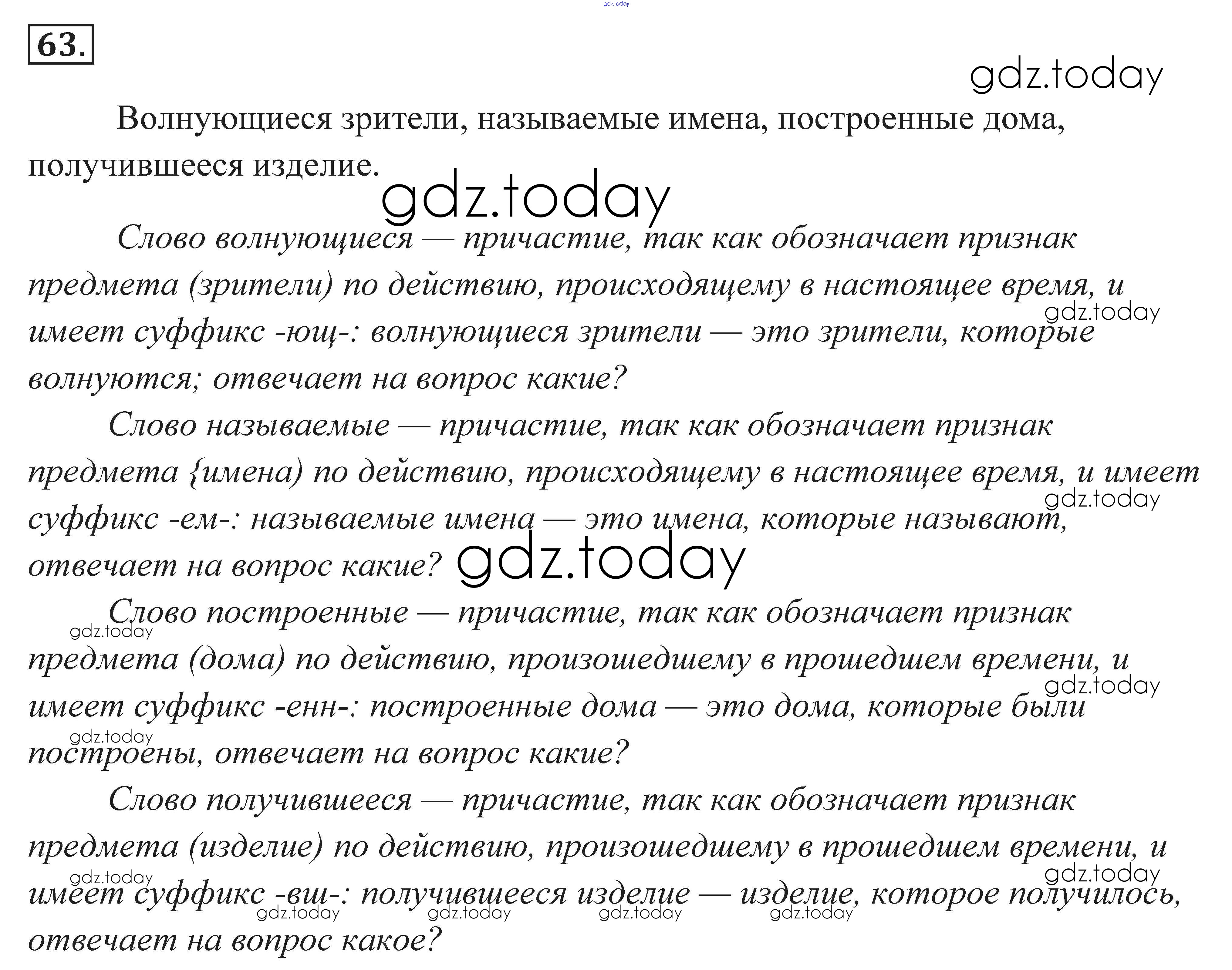 На страницах сайта gdz.today вы найдете учебный и вспомогательный материал, направленный на улучшения знаний школьной программы. ГДЗ - онлайн мир знаний Решение к заданиям 63 Практике по Русскому языку для 7 класса Пименова, Еремеева Дрофа 2016
