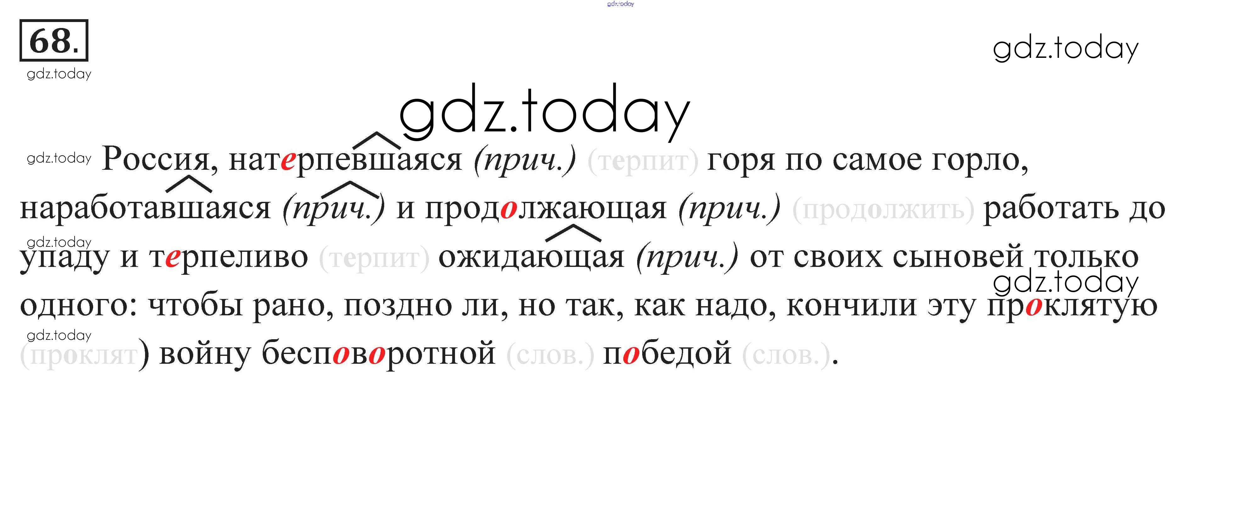 На страницах сайта gdz.today вы найдете учебный и вспомогательный материал, направленный на улучшения знаний школьной программы. ГДЗ - онлайн мир знаний Решение к заданиям 68 Практике по Русскому языку для 7 класса Пименова, Еремеева Дрофа 2016