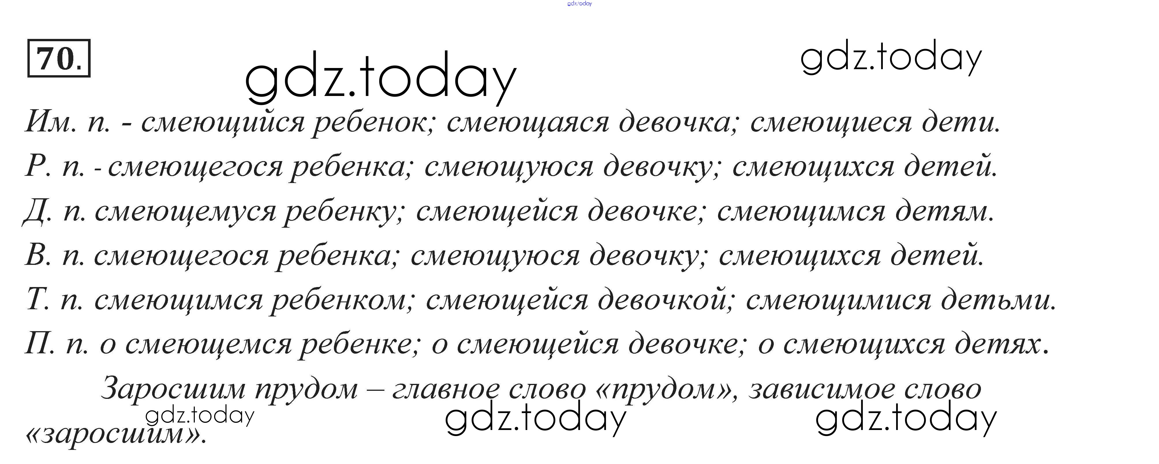 На страницах сайта gdz.today вы найдете учебный и вспомогательный материал, направленный на улучшения знаний школьной программы. ГДЗ - онлайн мир знаний Решение к заданиям 70 Практике по Русскому языку для 7 класса Пименова, Еремеева Дрофа 2016