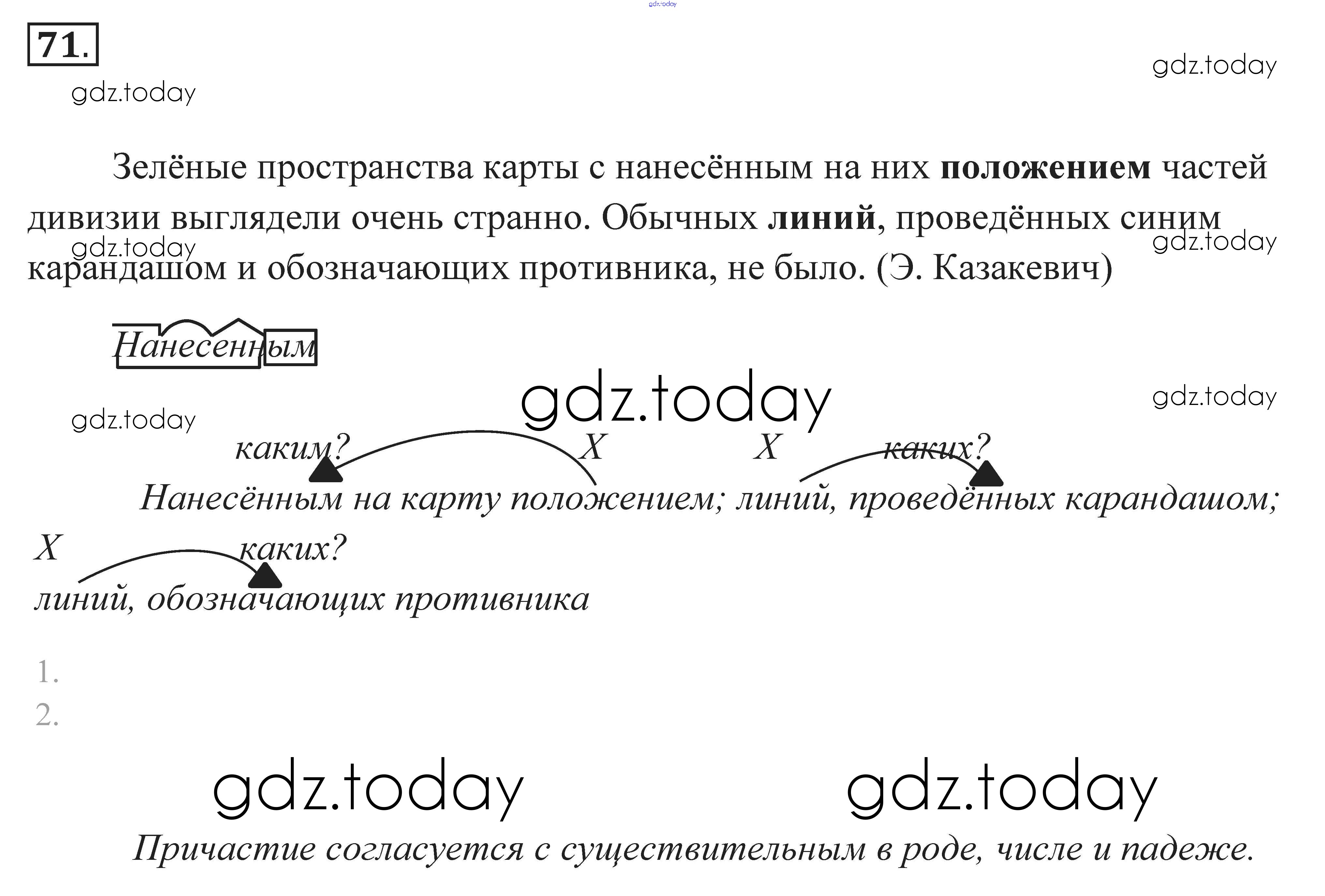 На страницах сайта gdz.today вы найдете учебный и вспомогательный материал, направленный на улучшения знаний школьной программы. ГДЗ - онлайн мир знаний Решение к заданиям 71 Практике по Русскому языку для 7 класса Пименова, Еремеева Дрофа 2016
