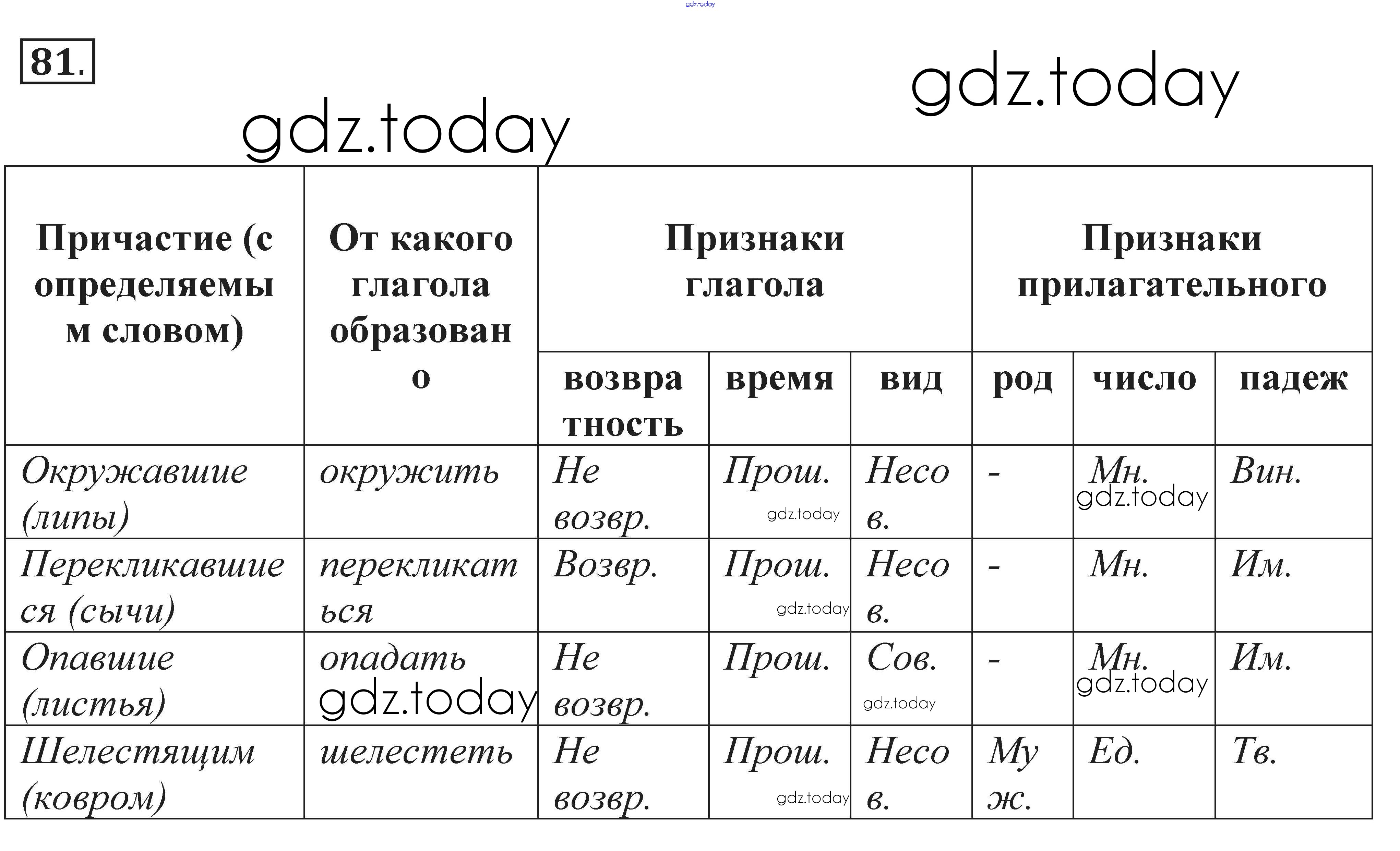На страницах сайта gdz.today вы найдете учебный и вспомогательный материал, направленный на улучшения знаний школьной программы. ГДЗ - онлайн мир знаний Решение к заданиям 81 Практике по Русскому языку для 7 класса Пименова, Еремеева Дрофа 2016