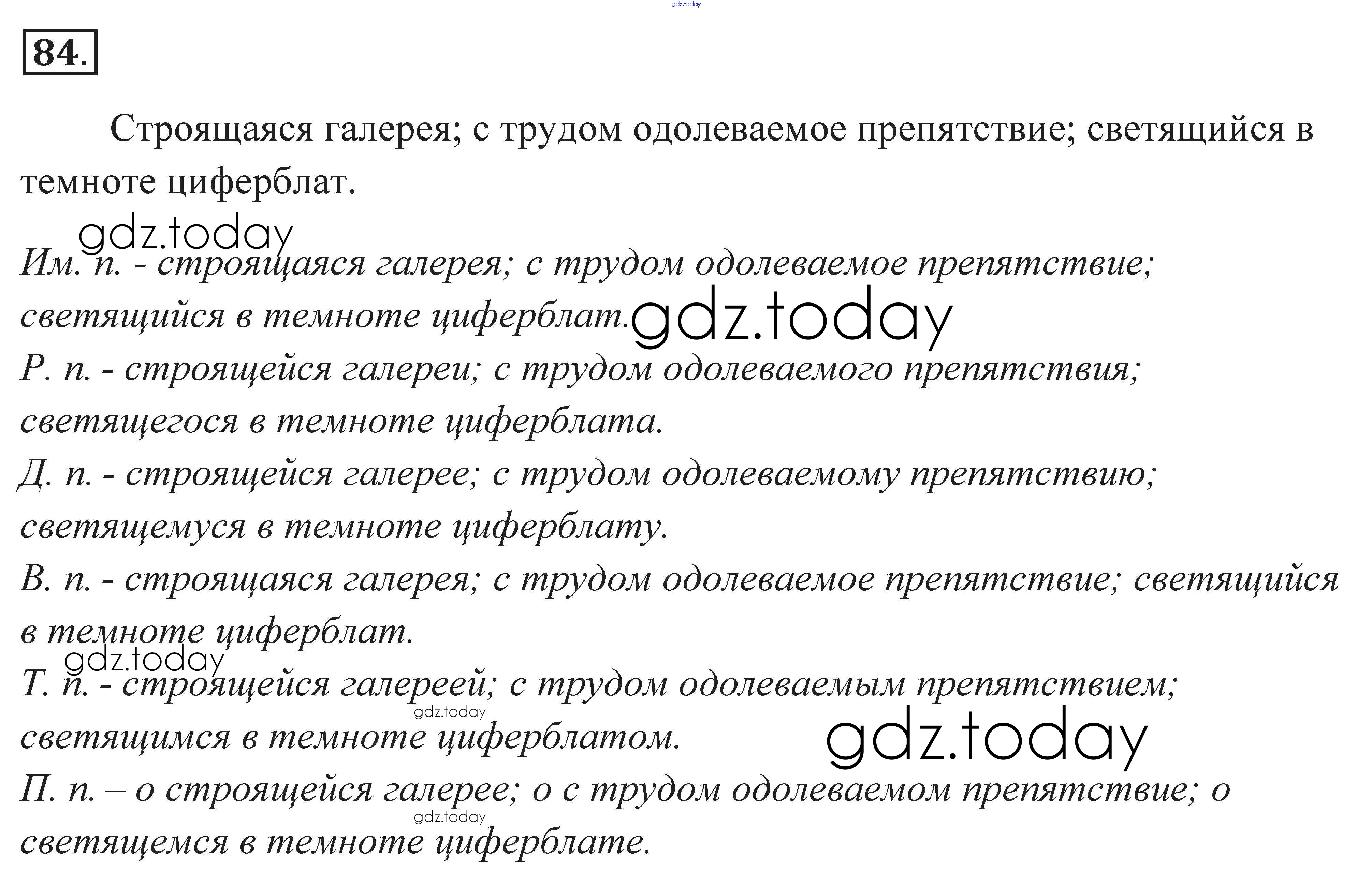 На страницах сайта gdz.today вы найдете учебный и вспомогательный материал, направленный на улучшения знаний школьной программы. ГДЗ - онлайн мир знаний Решение к заданиям 84 Практике по Русскому языку для 7 класса Пименова, Еремеева Дрофа 2016
