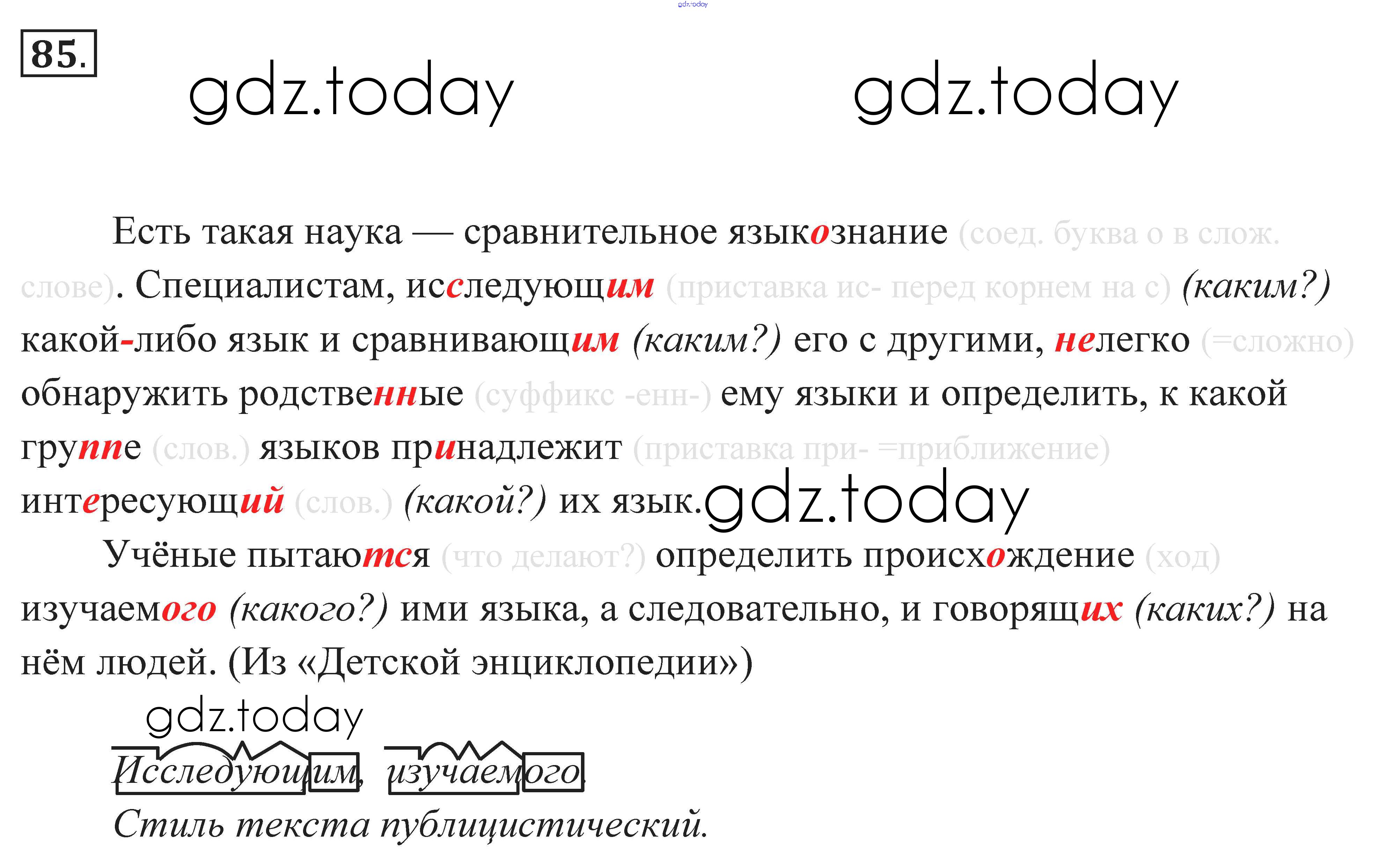 На страницах сайта gdz.today вы найдете учебный и вспомогательный материал, направленный на улучшения знаний школьной программы. ГДЗ - онлайн мир знаний Решение к заданиям 85 Практике по Русскому языку для 7 класса Пименова, Еремеева Дрофа 2016