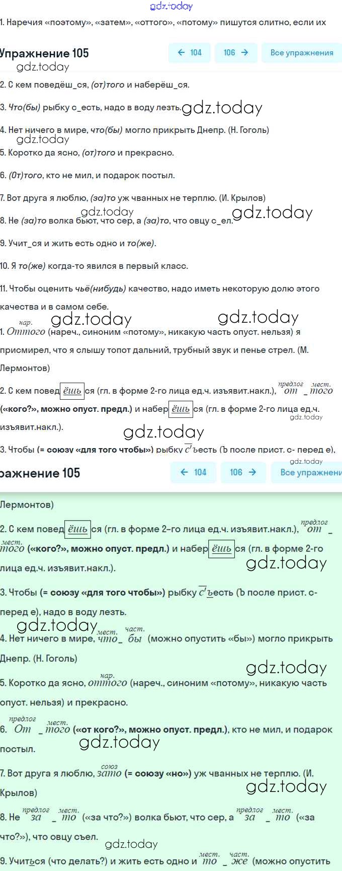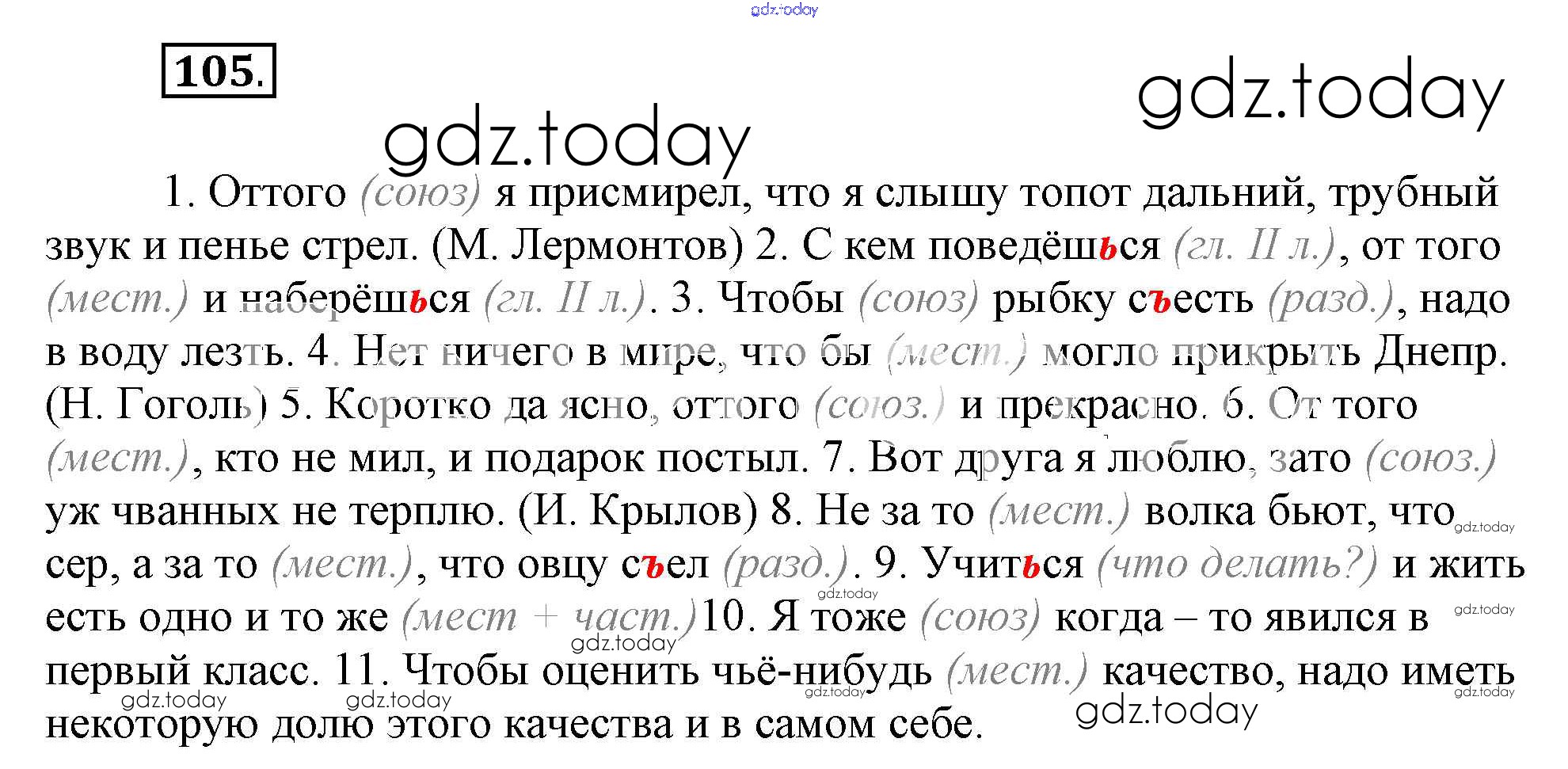 На страницах сайта gdz.today вы найдете учебный и вспомогательный материал, направленный на улучшения знаний школьной программы. ГДЗ - онлайн мир знаний Упражнения (решение) 105 Рабочей тетради по Русскому языку для 7 класса Ефремова, Баранова Просвещение, Просвещение УМК 2017, 2022