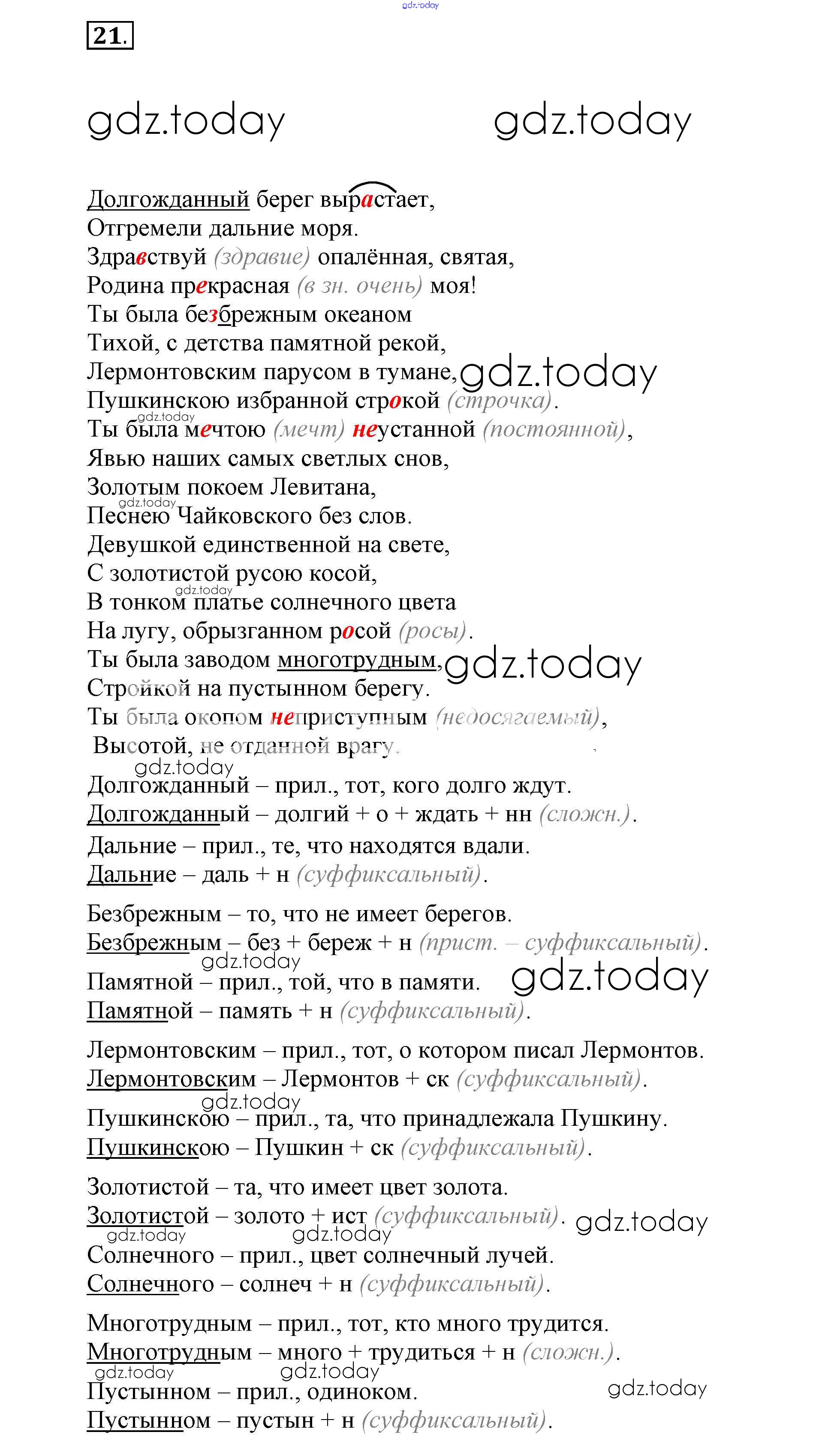 На страницах сайта gdz.today вы найдете учебный и вспомогательный материал, направленный на улучшения знаний школьной программы. ГДЗ - онлайн мир знаний Упражнения (решение) 21 Рабочей тетради по Русскому языку для 7 класса Ефремова, Баранова Просвещение, Просвещение УМК 2017, 2022