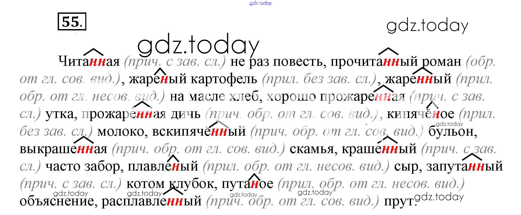На страницах сайта gdz.today вы найдете учебный и вспомогательный материал, направленный на улучшения знаний школьной программы. ГДЗ - онлайн мир знаний Упражнения (решение) 55 Рабочей тетради по Русскому языку для 7 класса Ефремова, Баранова Просвещение, Просвещение УМК 2017, 2022