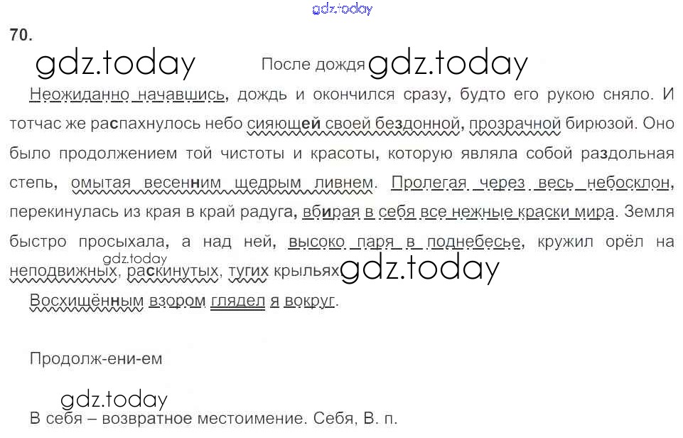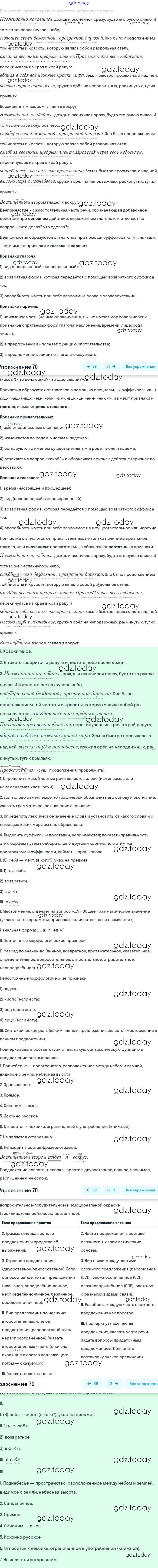На страницах сайта gdz.today вы найдете учебный и вспомогательный материал, направленный на улучшения знаний школьной программы. ГДЗ - онлайн мир знаний Упражнения (решение) 70 Рабочей тетради по Русскому языку для 7 класса Ефремова, Баранова Просвещение, Просвещение УМК 2017, 2022