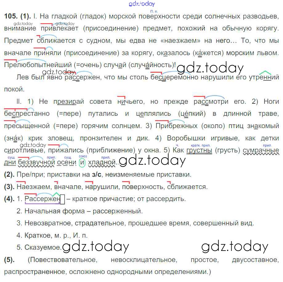 На страницах сайта gdz.today вы найдете учебный и вспомогательный материал, направленный на улучшения знаний школьной программы. ГДЗ - онлайн мир знаний Решение к упражнениям 105 Учебнику по Русскому языку для 7 класса Разумовская, Львова Дрофа, Просвещение УМК 2014, 2022