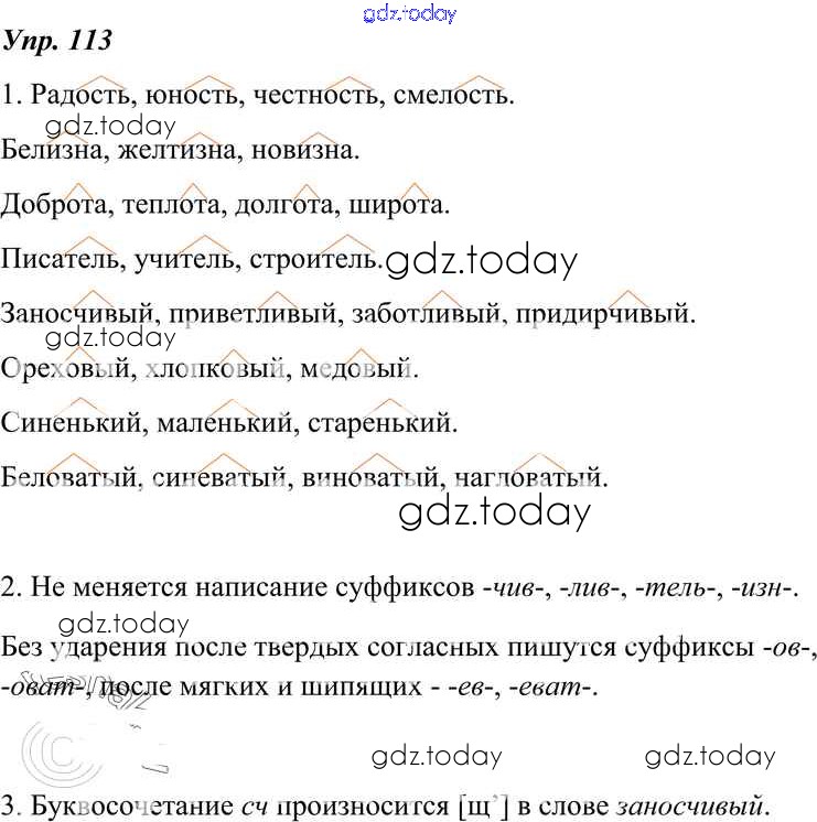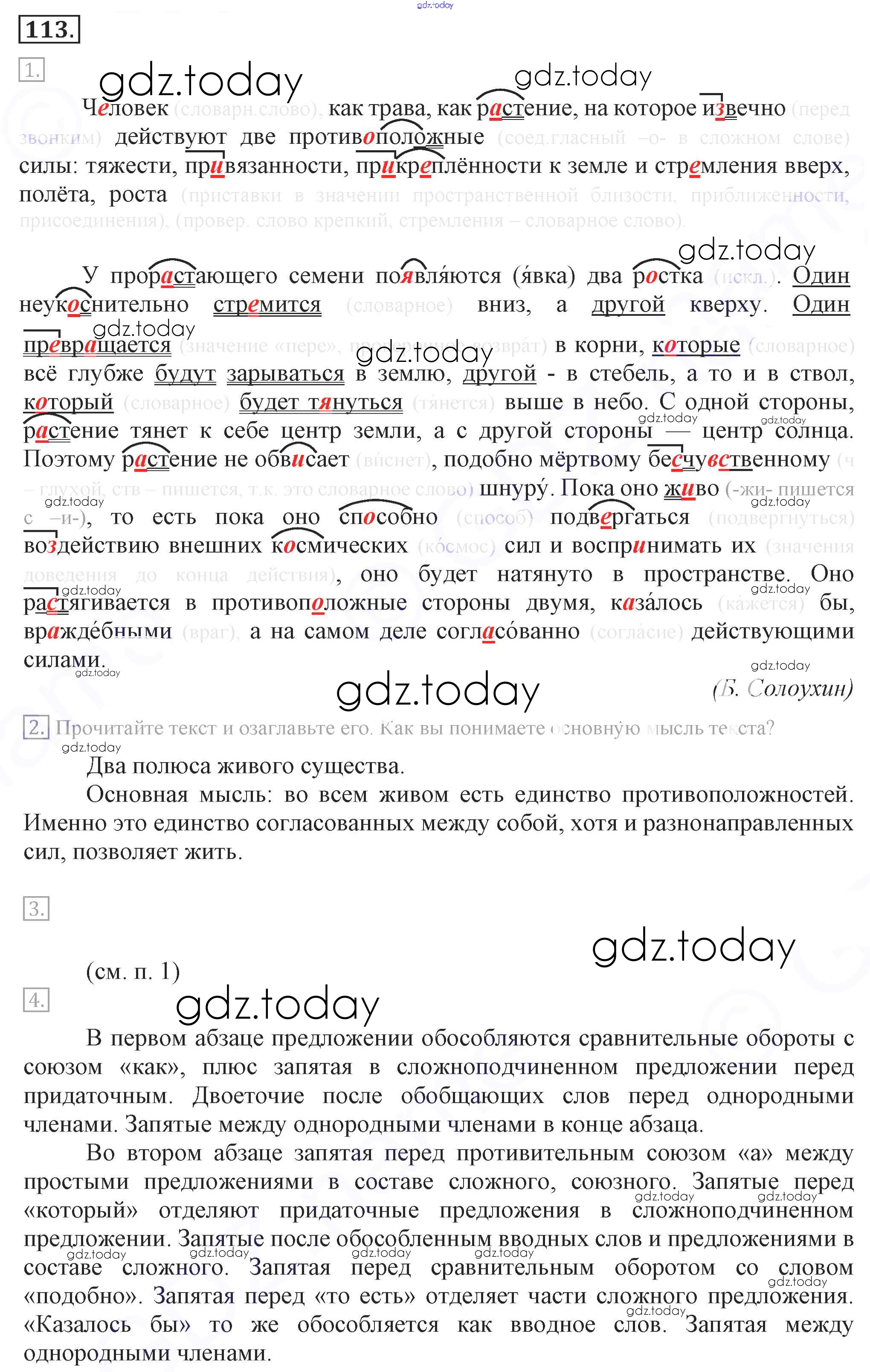 На страницах сайта gdz.today вы найдете учебный и вспомогательный материал, направленный на улучшения знаний школьной программы. ГДЗ - онлайн мир знаний Решение к упражнениям 113 Учебнику по Русскому языку для 7 класса Разумовская, Львова Дрофа, Просвещение УМК 2014, 2022