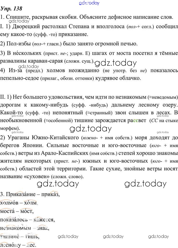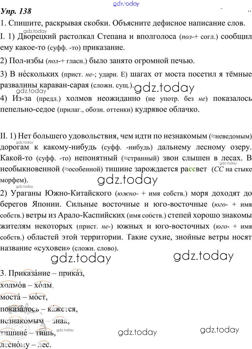 На страницах сайта gdz.today вы найдете учебный и вспомогательный материал, направленный на улучшения знаний школьной программы. ГДЗ - онлайн мир знаний Решение к упражнениям 138 Учебнику по Русскому языку для 7 класса Разумовская, Львова Дрофа, Просвещение УМК 2014, 2022