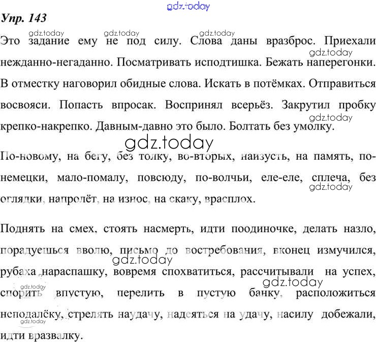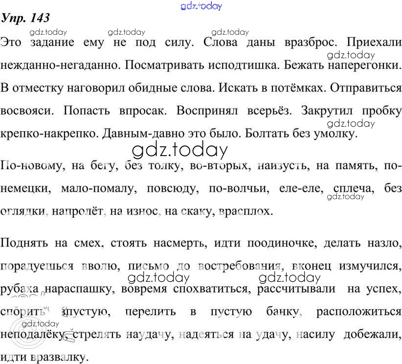 На страницах сайта gdz.today вы найдете учебный и вспомогательный материал, направленный на улучшения знаний школьной программы. ГДЗ - онлайн мир знаний Решение к упражнениям 143 Учебнику по Русскому языку для 7 класса Разумовская, Львова Дрофа, Просвещение УМК 2014, 2022