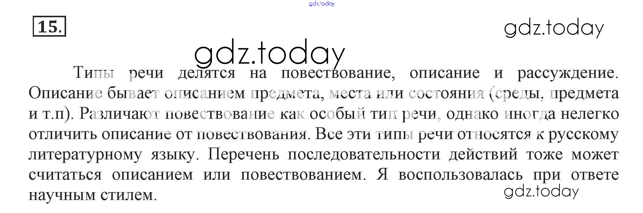 На страницах сайта gdz.today вы найдете учебный и вспомогательный материал, направленный на улучшения знаний школьной программы. ГДЗ - онлайн мир знаний Решение к упражнениям 15 Учебнику по Русскому языку для 7 класса Разумовская, Львова Дрофа, Просвещение УМК 2014, 2022