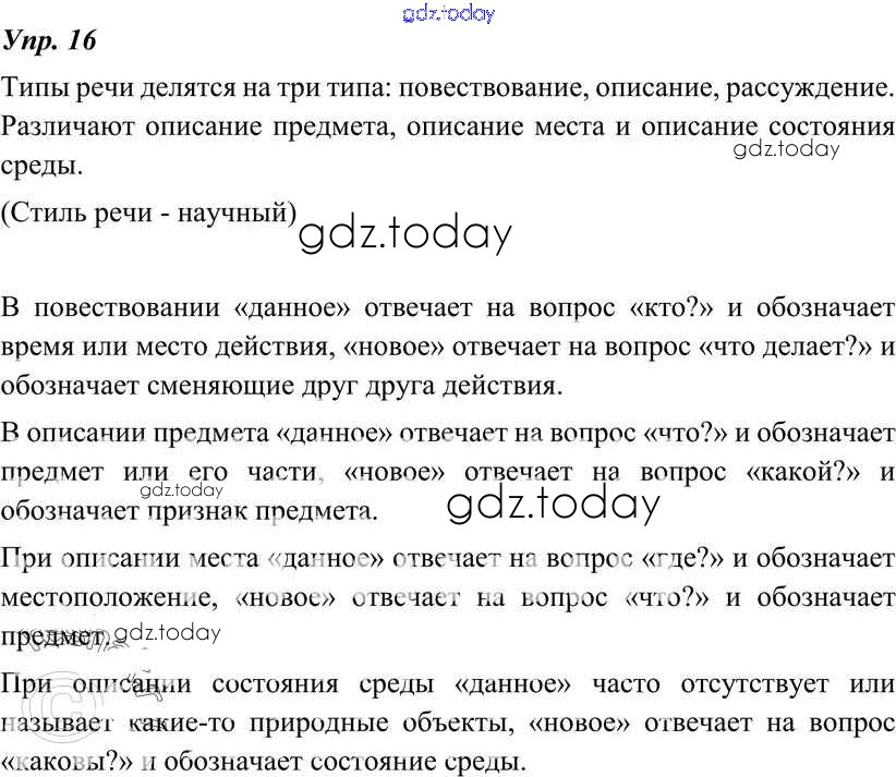 На страницах сайта gdz.today вы найдете учебный и вспомогательный материал, направленный на улучшения знаний школьной программы. ГДЗ - онлайн мир знаний Решение к упражнениям 16 Учебнику по Русскому языку для 7 класса Разумовская, Львова Дрофа, Просвещение УМК 2014, 2022