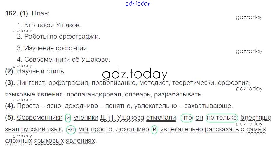 На страницах сайта gdz.today вы найдете учебный и вспомогательный материал, направленный на улучшения знаний школьной программы. ГДЗ - онлайн мир знаний Решение к упражнениям 162 Учебнику по Русскому языку для 7 класса Разумовская, Львова Дрофа, Просвещение УМК 2014, 2022