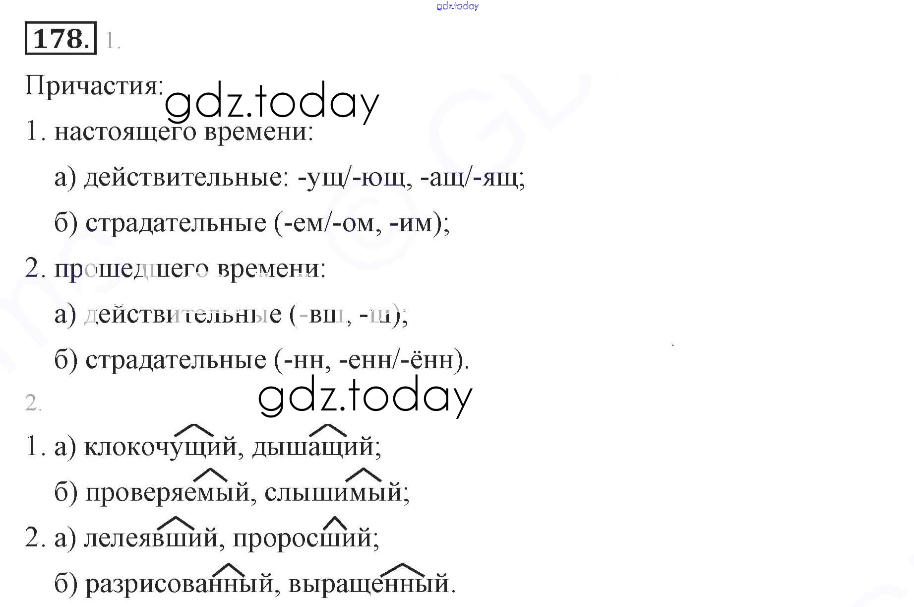На страницах сайта gdz.today вы найдете учебный и вспомогательный материал, направленный на улучшения знаний школьной программы. ГДЗ - онлайн мир знаний Решение к упражнениям 178 Учебнику по Русскому языку для 7 класса Разумовская, Львова Дрофа, Просвещение УМК 2014, 2022