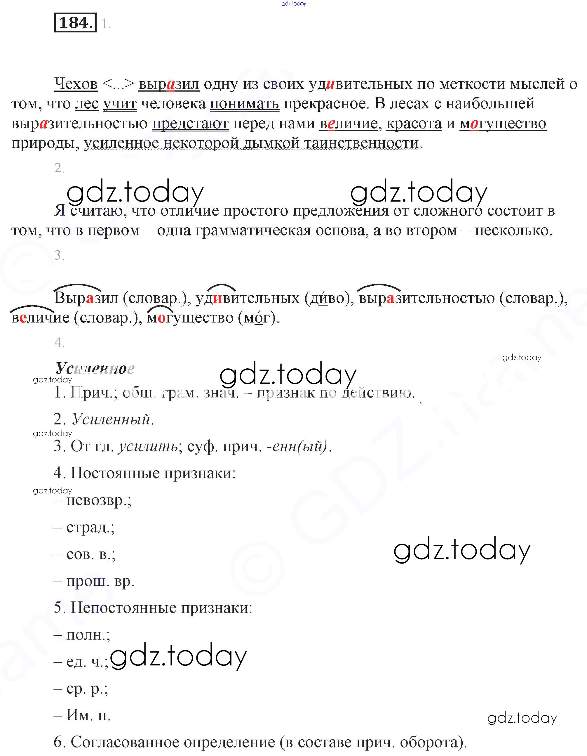 На страницах сайта gdz.today вы найдете учебный и вспомогательный материал, направленный на улучшения знаний школьной программы. ГДЗ - онлайн мир знаний Решение к упражнениям 184 Учебнику по Русскому языку для 7 класса Разумовская, Львова Дрофа, Просвещение УМК 2014, 2022