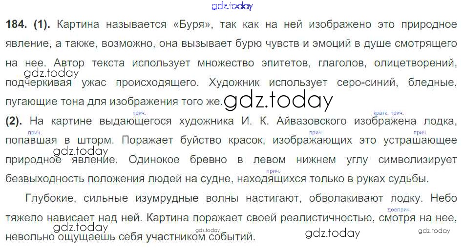 Ответы к Решение к упражнениям 184 Учебнику по Русскому языку для 7 класса Разумовская, Львова Дрофа, Просвещение УМК 2014, 2022