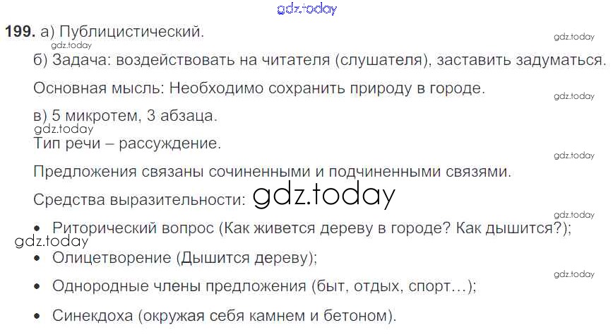 На страницах сайта gdz.today вы найдете учебный и вспомогательный материал, направленный на улучшения знаний школьной программы. ГДЗ - онлайн мир знаний Решение к упражнениям 199 Учебнику по Русскому языку для 7 класса Разумовская, Львова Дрофа, Просвещение УМК 2014, 2022