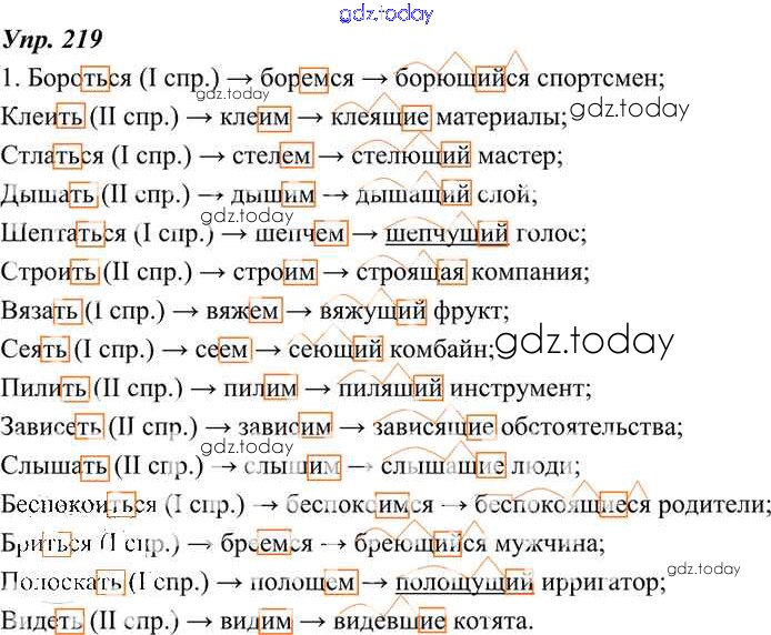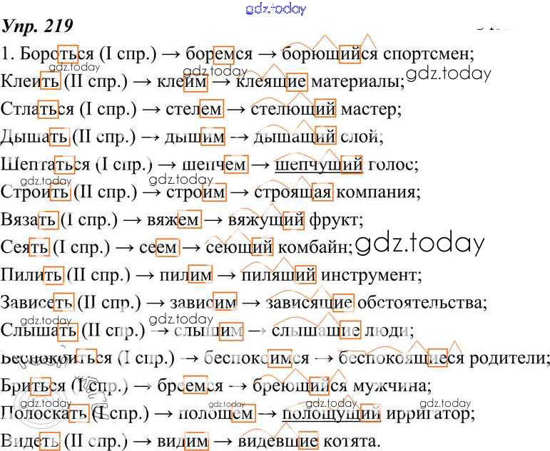 На страницах сайта gdz.today вы найдете учебный и вспомогательный материал, направленный на улучшения знаний школьной программы. ГДЗ - онлайн мир знаний Решение к упражнениям 219 Учебнику по Русскому языку для 7 класса Разумовская, Львова Дрофа, Просвещение УМК 2014, 2022