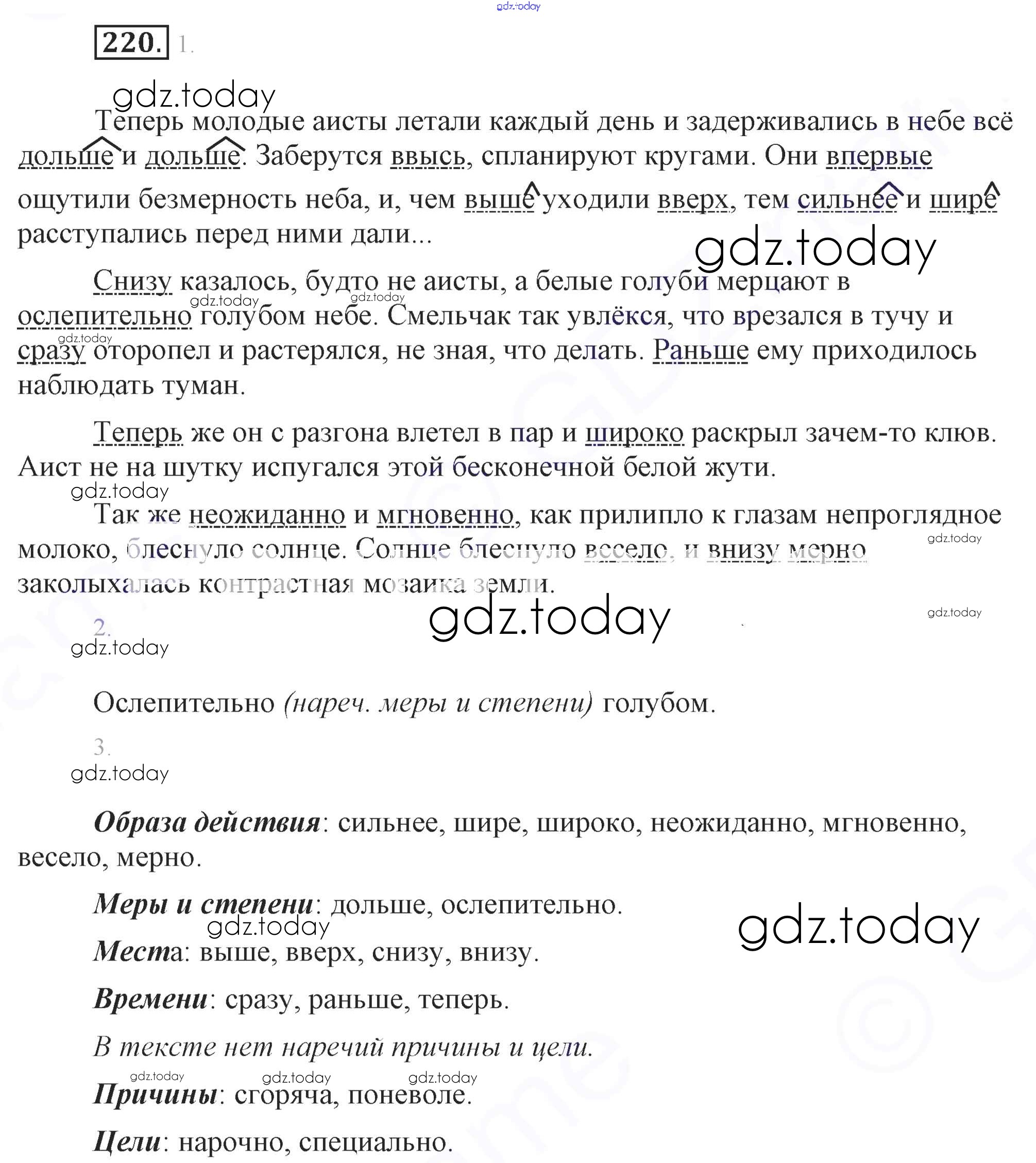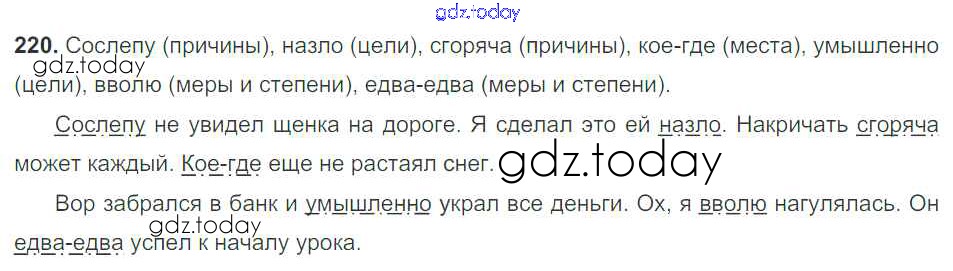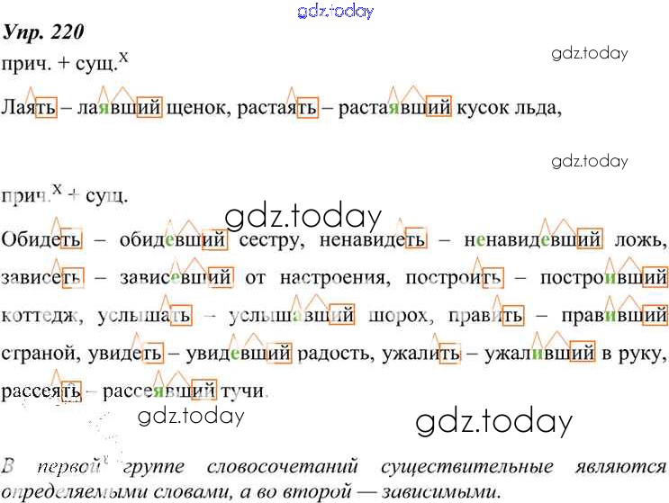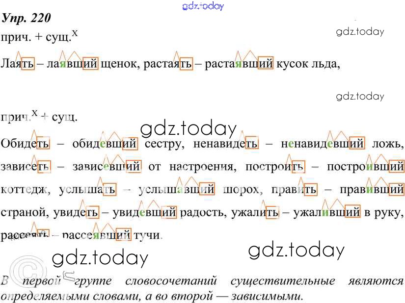 На страницах сайта gdz.today вы найдете учебный и вспомогательный материал, направленный на улучшения знаний школьной программы. ГДЗ - онлайн мир знаний Решение к упражнениям 220 Учебнику по Русскому языку для 7 класса Разумовская, Львова Дрофа, Просвещение УМК 2014, 2022