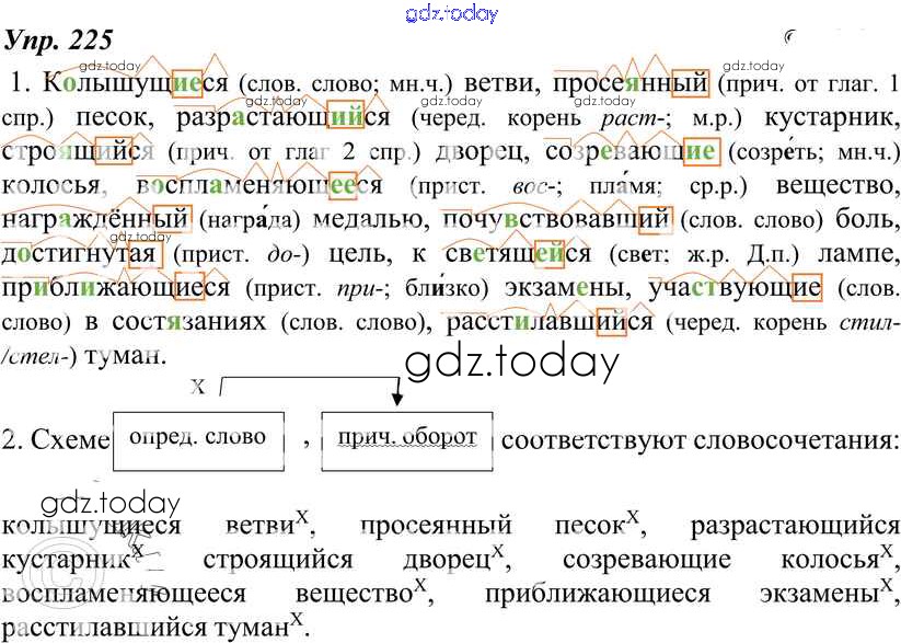 На страницах сайта gdz.today вы найдете учебный и вспомогательный материал, направленный на улучшения знаний школьной программы. ГДЗ - онлайн мир знаний Решение к упражнениям 225 Учебнику по Русскому языку для 7 класса Разумовская, Львова Дрофа, Просвещение УМК 2014, 2022