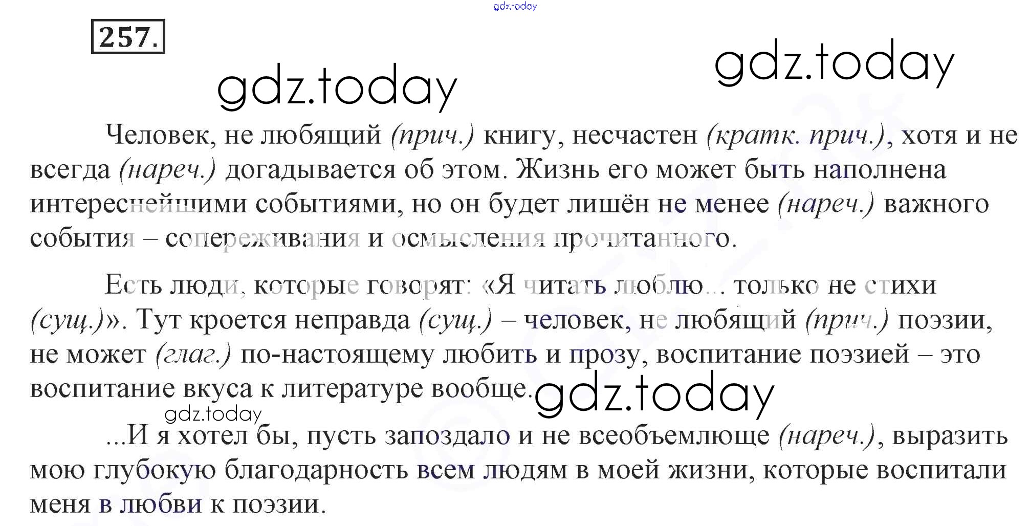 На страницах сайта gdz.today вы найдете учебный и вспомогательный материал, направленный на улучшения знаний школьной программы. ГДЗ - онлайн мир знаний Решение к упражнениям 257 Учебнику по Русскому языку для 7 класса Разумовская, Львова Дрофа, Просвещение УМК 2014, 2022