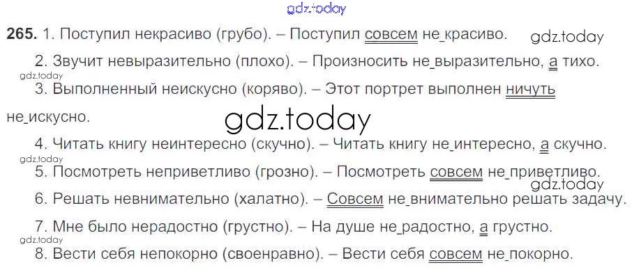 На страницах сайта gdz.today вы найдете учебный и вспомогательный материал, направленный на улучшения знаний школьной программы. ГДЗ - онлайн мир знаний Решение к упражнениям 265 Учебнику по Русскому языку для 7 класса Разумовская, Львова Дрофа, Просвещение УМК 2014, 2022