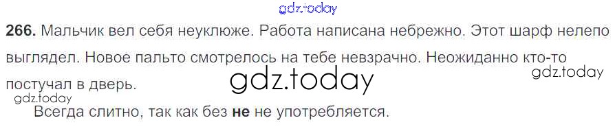 На страницах сайта gdz.today вы найдете учебный и вспомогательный материал, направленный на улучшения знаний школьной программы. ГДЗ - онлайн мир знаний Решение к упражнениям 266 Учебнику по Русскому языку для 7 класса Разумовская, Львова Дрофа, Просвещение УМК 2014, 2022