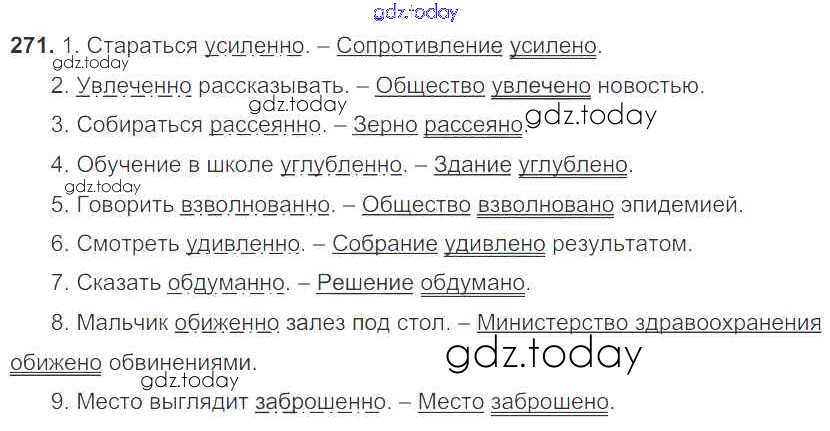 На страницах сайта gdz.today вы найдете учебный и вспомогательный материал, направленный на улучшения знаний школьной программы. ГДЗ - онлайн мир знаний Решение к упражнениям 271 Учебнику по Русскому языку для 7 класса Разумовская, Львова Дрофа, Просвещение УМК 2014, 2022