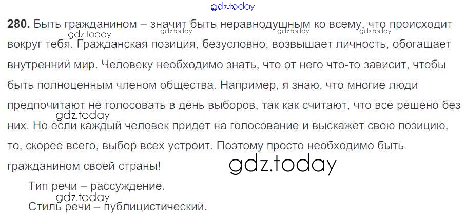 На страницах сайта gdz.today вы найдете учебный и вспомогательный материал, направленный на улучшения знаний школьной программы. ГДЗ - онлайн мир знаний Решение к упражнениям 280 Учебнику по Русскому языку для 7 класса Разумовская, Львова Дрофа, Просвещение УМК 2014, 2022
