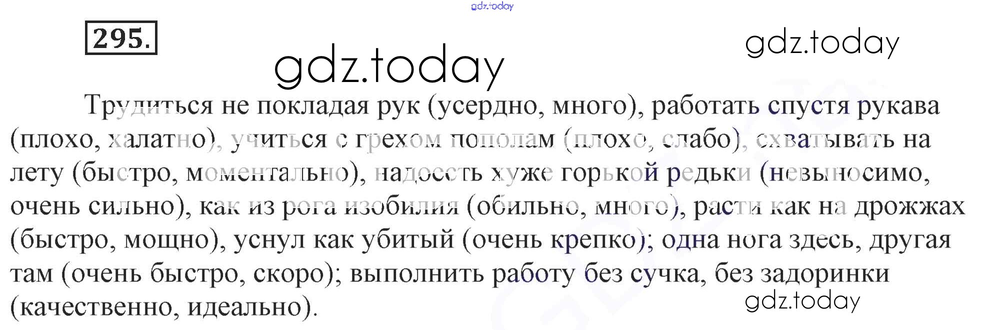 На страницах сайта gdz.today вы найдете учебный и вспомогательный материал, направленный на улучшения знаний школьной программы. ГДЗ - онлайн мир знаний Решение к упражнениям 295 Учебнику по Русскому языку для 7 класса Разумовская, Львова Дрофа, Просвещение УМК 2014, 2022