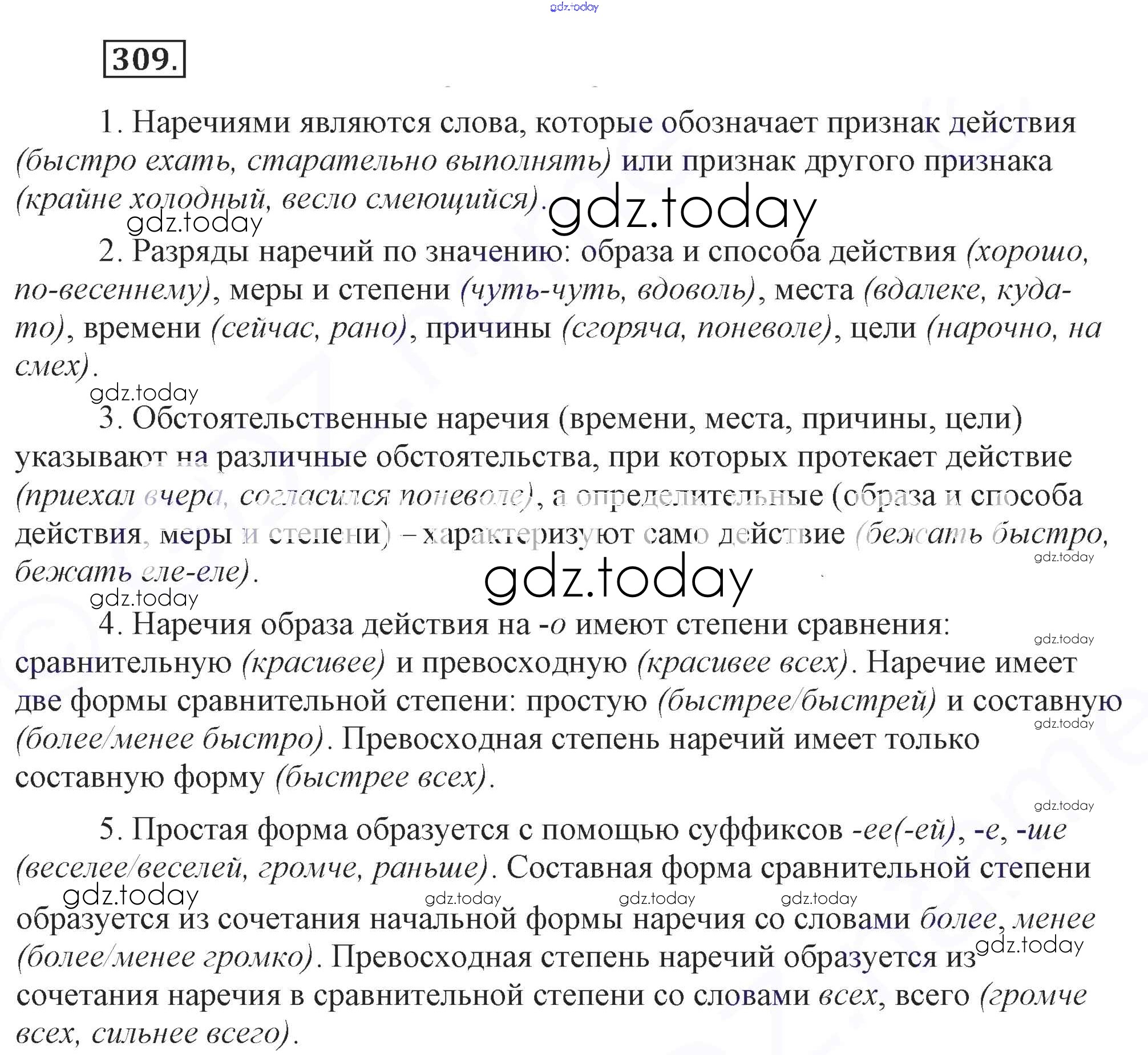 На страницах сайта gdz.today вы найдете учебный и вспомогательный материал, направленный на улучшения знаний школьной программы. ГДЗ - онлайн мир знаний Решение к упражнениям 309 Учебнику по Русскому языку для 7 класса Разумовская, Львова Дрофа, Просвещение УМК 2014, 2022