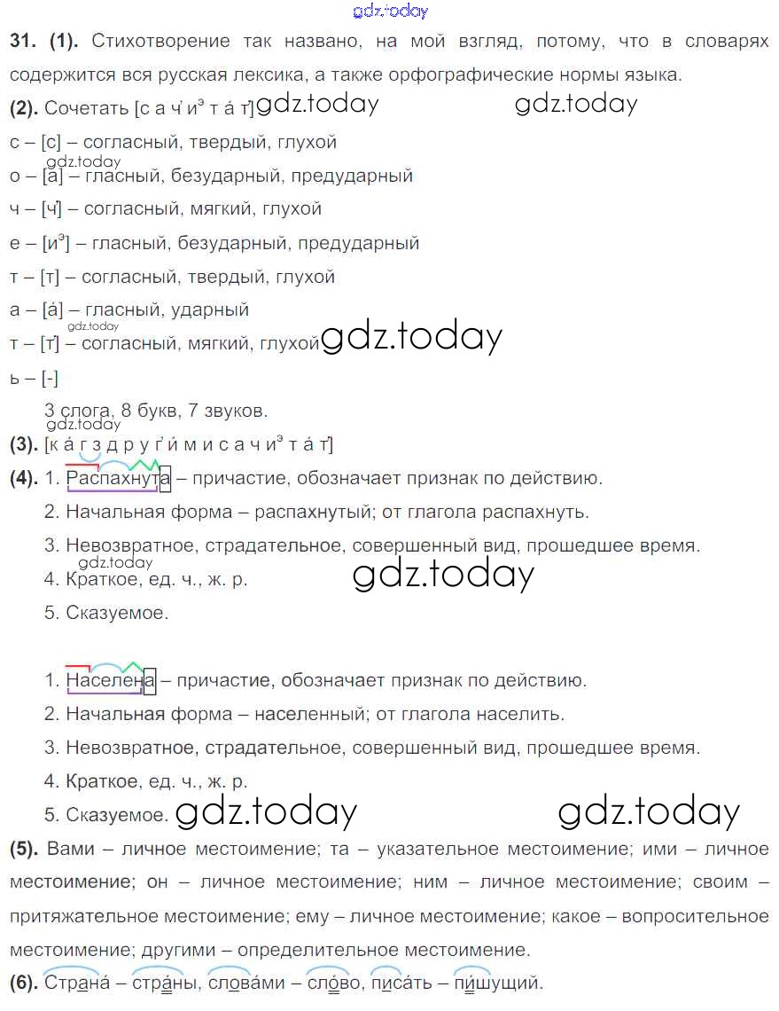 На страницах сайта gdz.today вы найдете учебный и вспомогательный материал, направленный на улучшения знаний школьной программы. ГДЗ - онлайн мир знаний Решение к упражнениям 31 Учебнику по Русскому языку для 7 класса Разумовская, Львова Дрофа, Просвещение УМК 2014, 2022